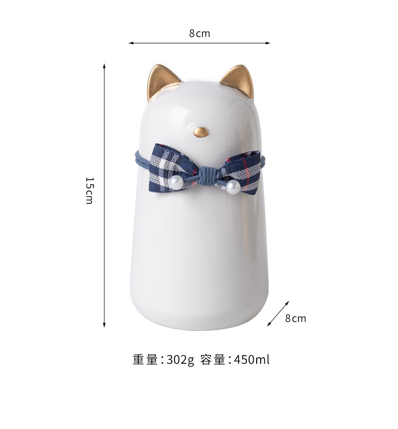 bz21-05 (bow fat cat ceramic funeral urn) (white) (gold ears)
