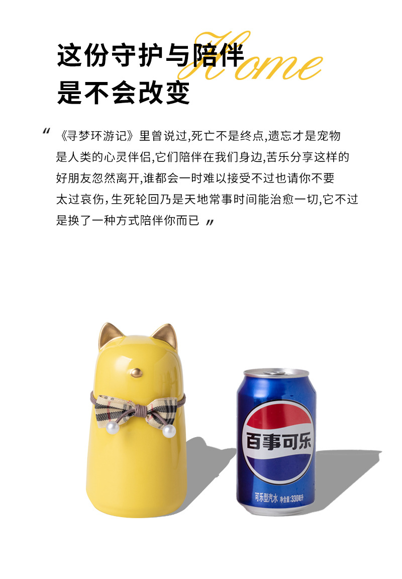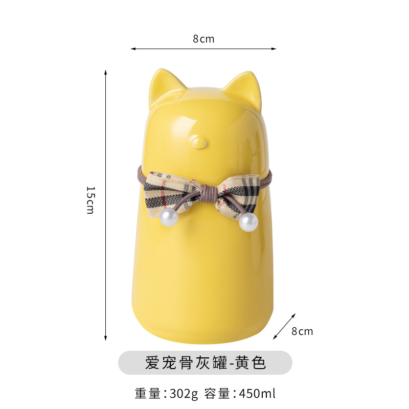 bz21-04 (bow fat cat ceramic funeral urn) (yellow)