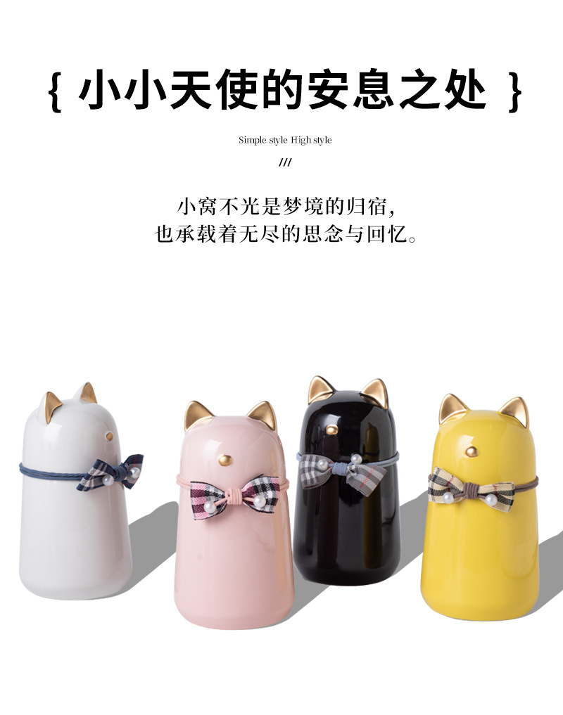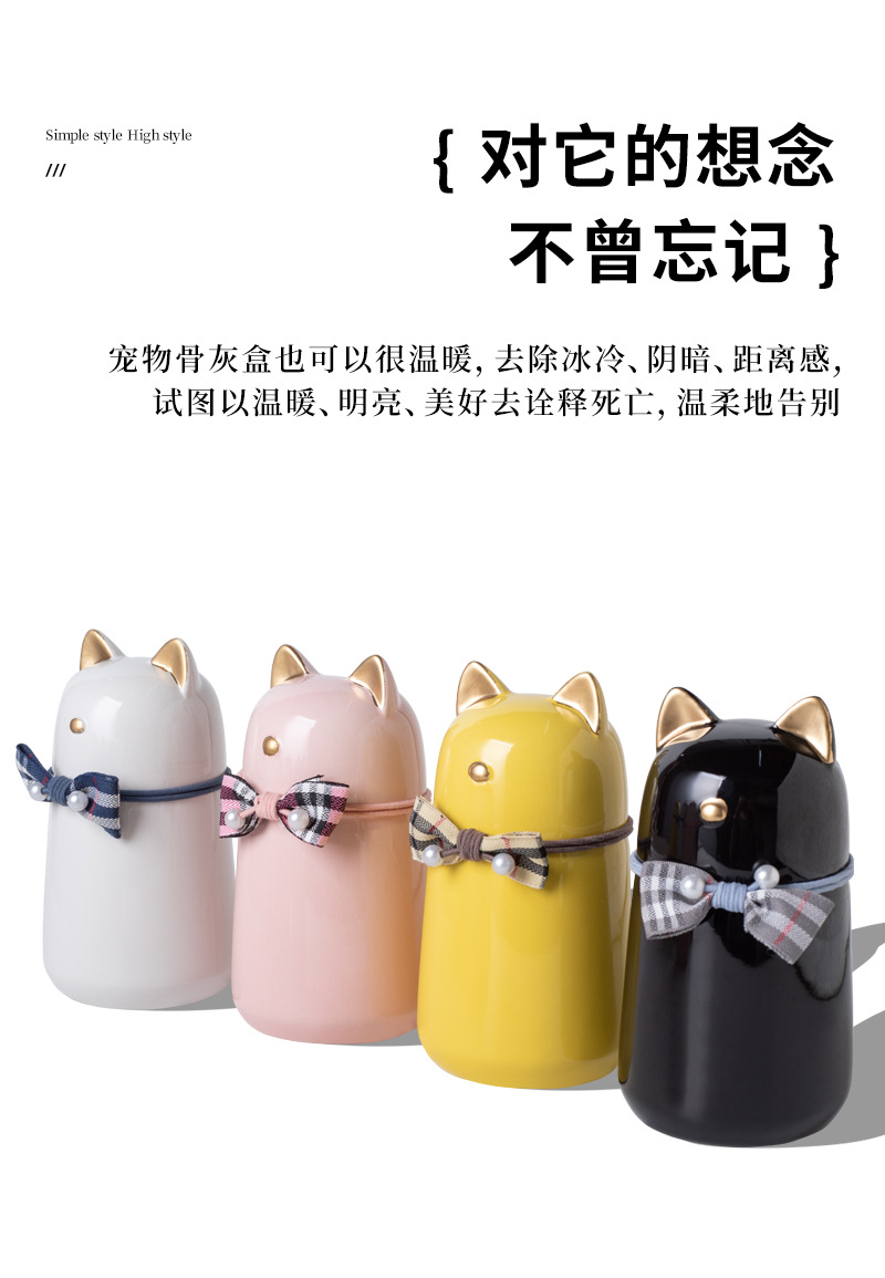 bz21-01 (bow fat cat ceramic funeral urn) (white)