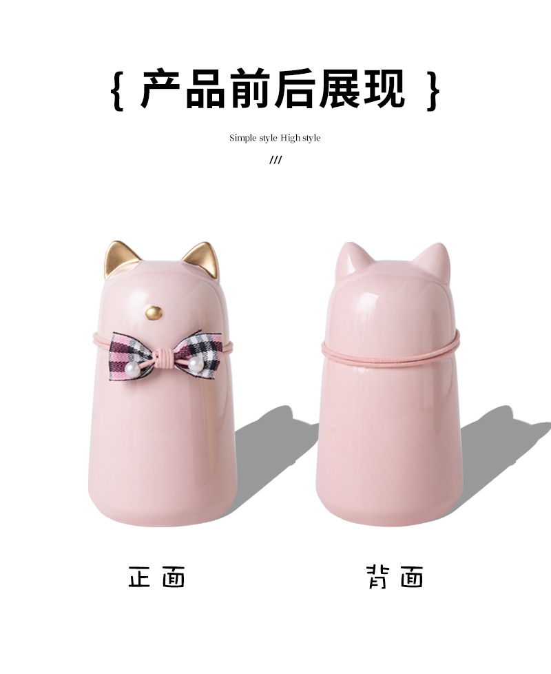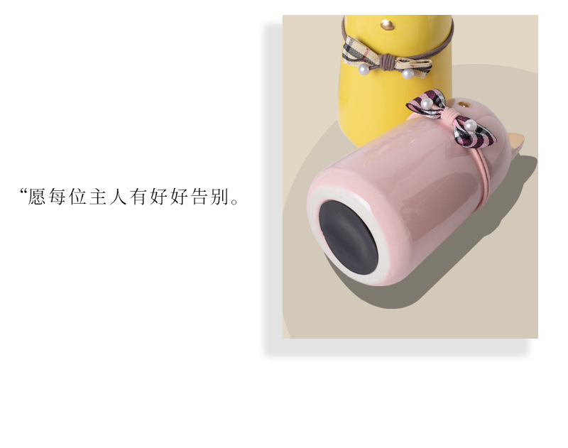 bz21-03 (bow fat cat ceramic funeral urn) (pink)