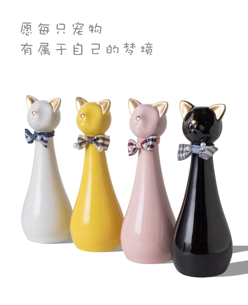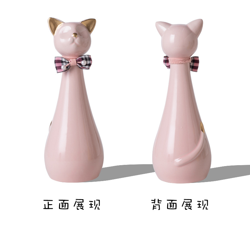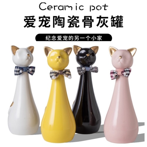 bz17-03 (bow high cat ceramic funeral urn) (pink)