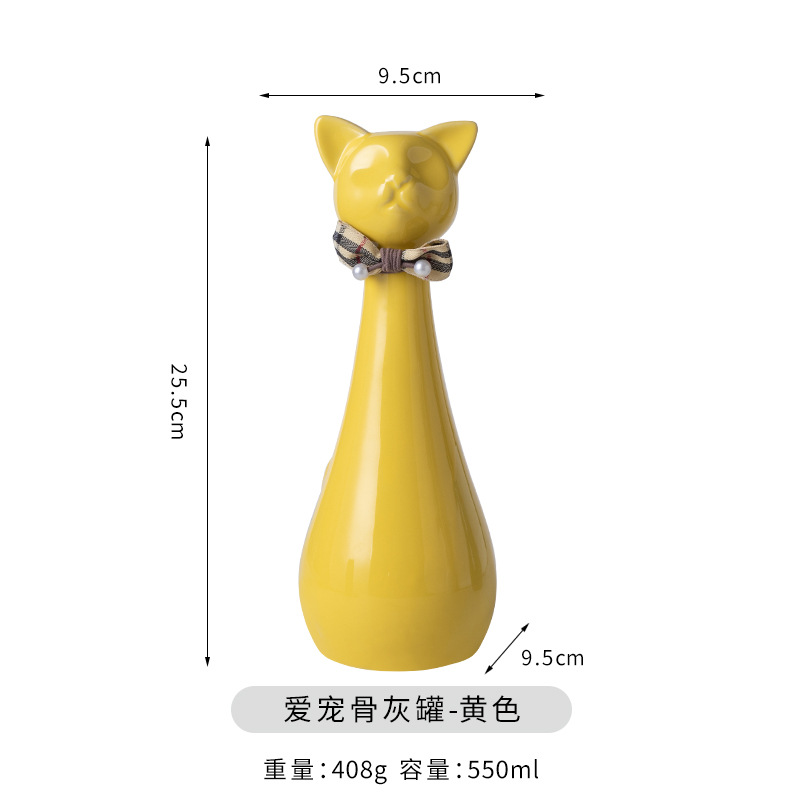 bz17-04 (bow high cat ceramic funeral urn) (yellow)