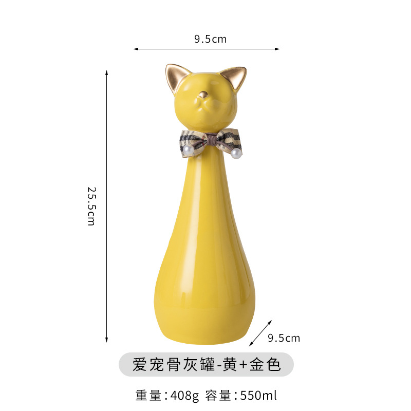 bz17-08 (bow high cat ceramic funeral urn) (yellow) (gold ears)