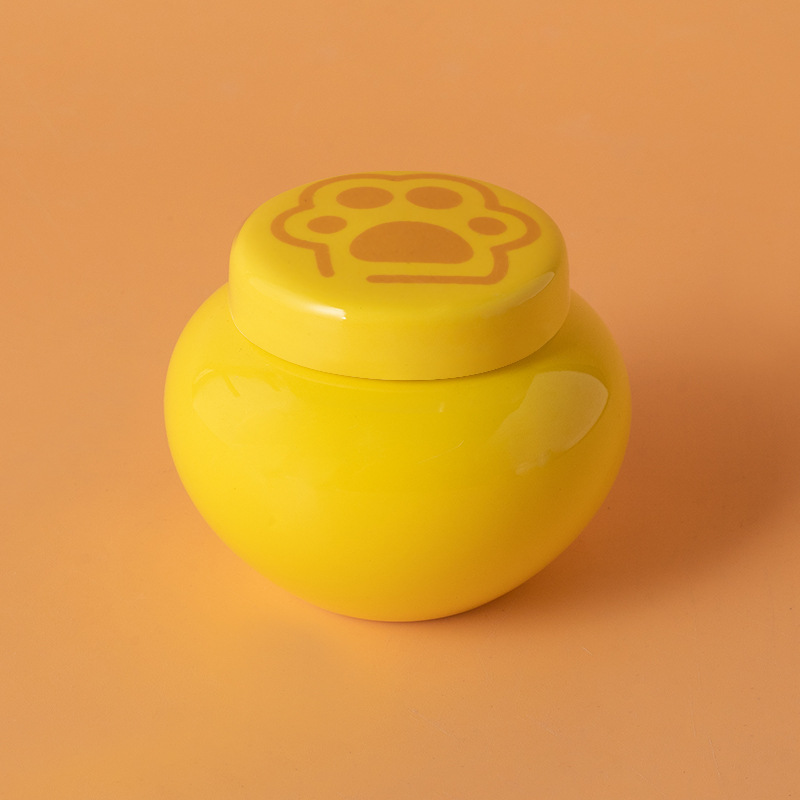 round funeral urn (yellow) (black paw print)