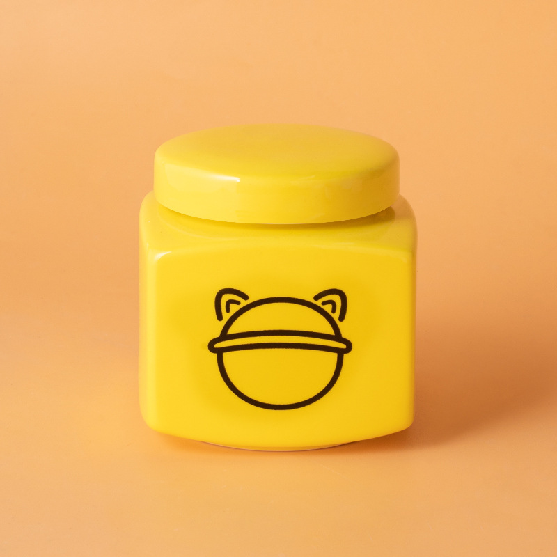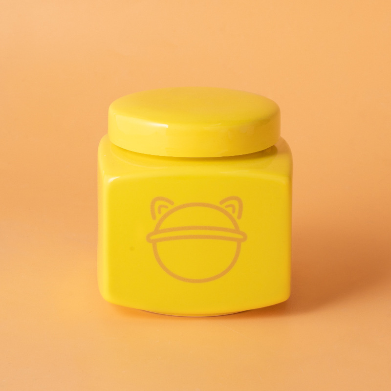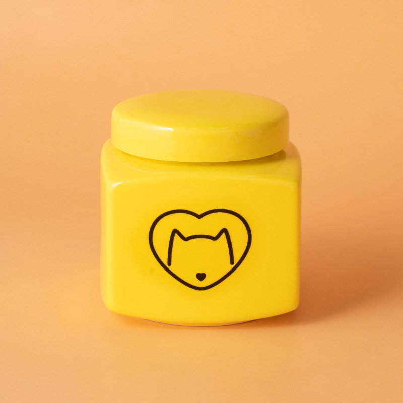 square funeral urn (yellow) (black love cat head)