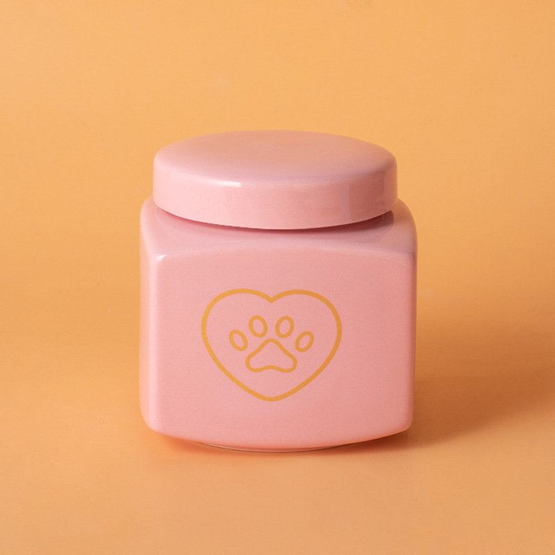 square funeral urn (pink) (golden paw print)
