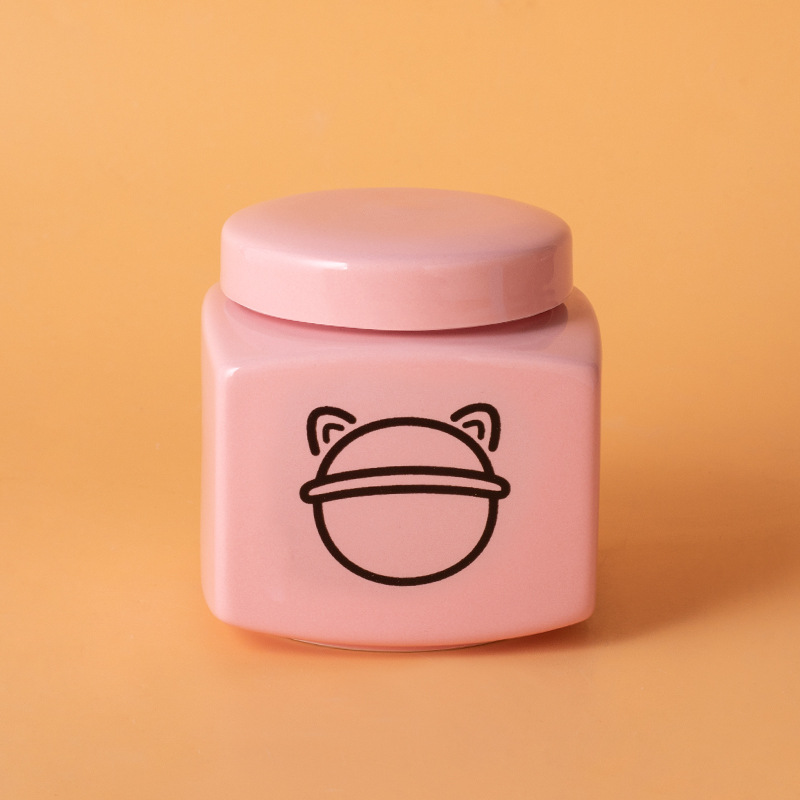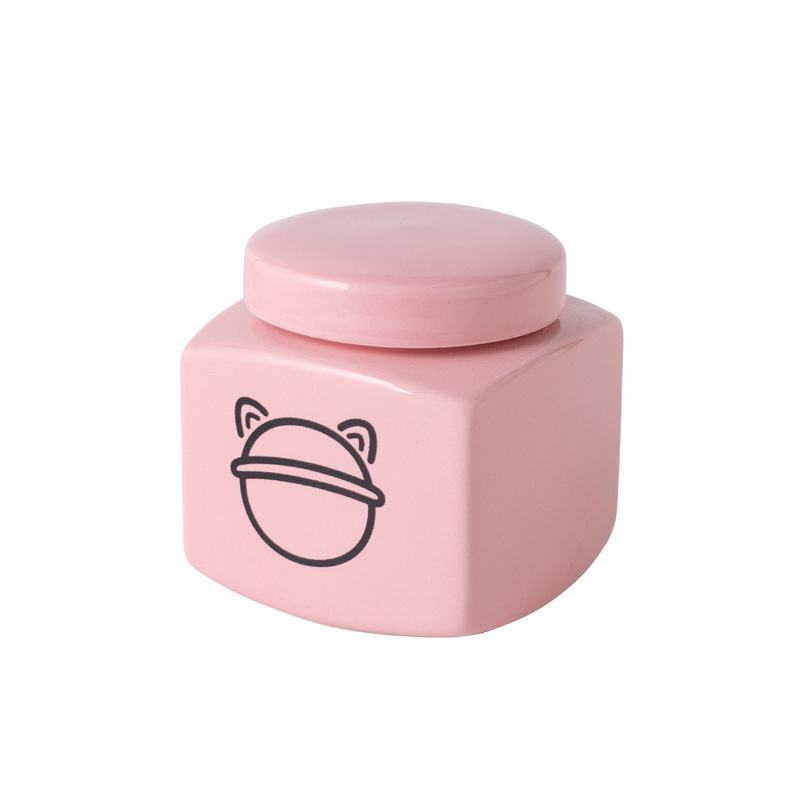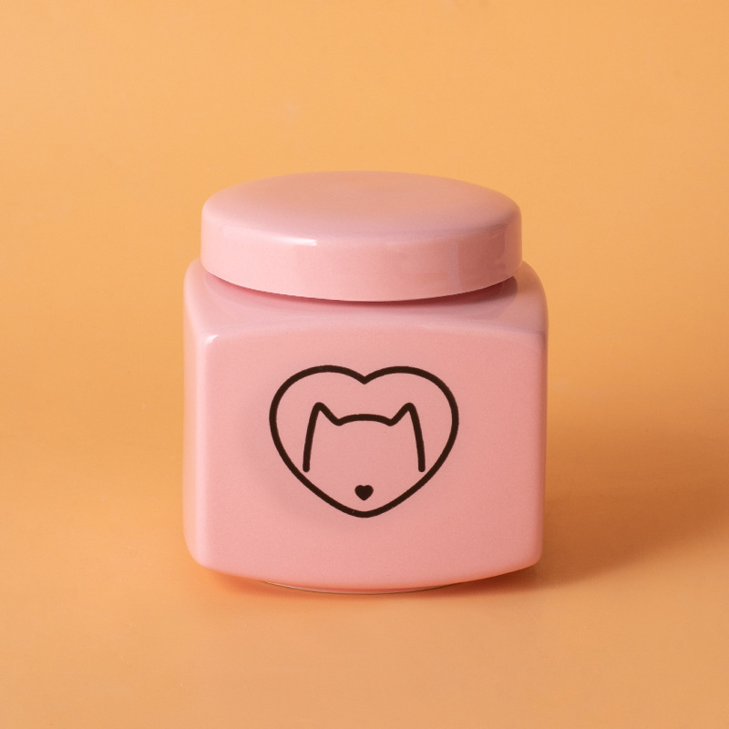 square funeral urn (pink) (black love cat head)