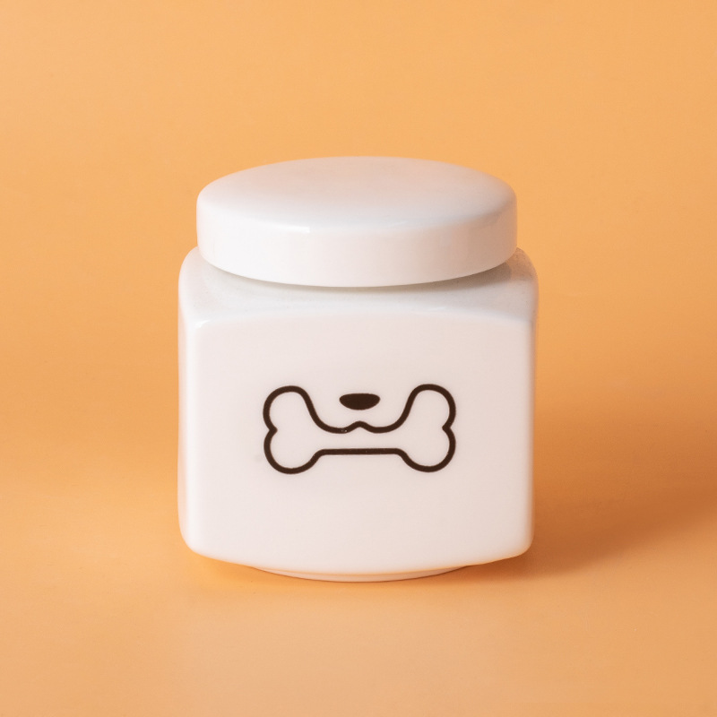 square funeral urn (white) (black dog biting head)