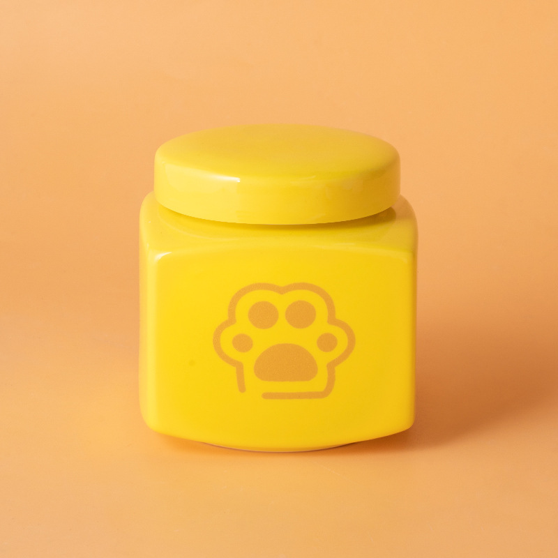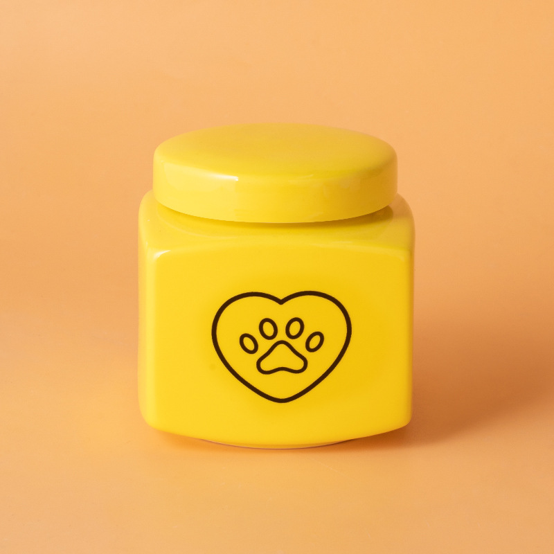 square funeral urn (yellow) (black paw print)