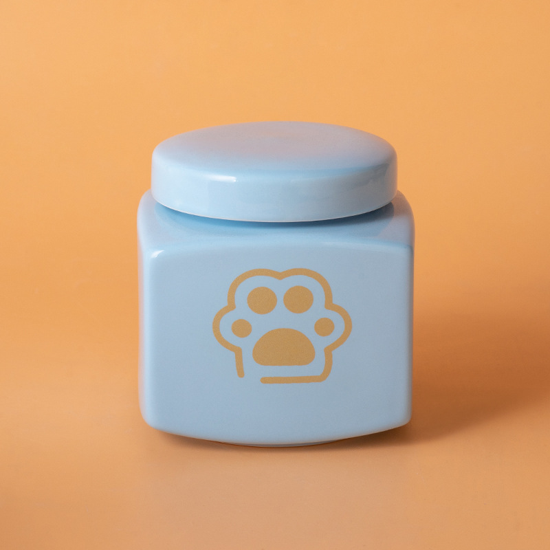 square funeral urn (blue) (black paw print)