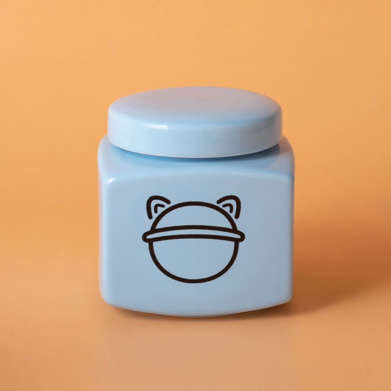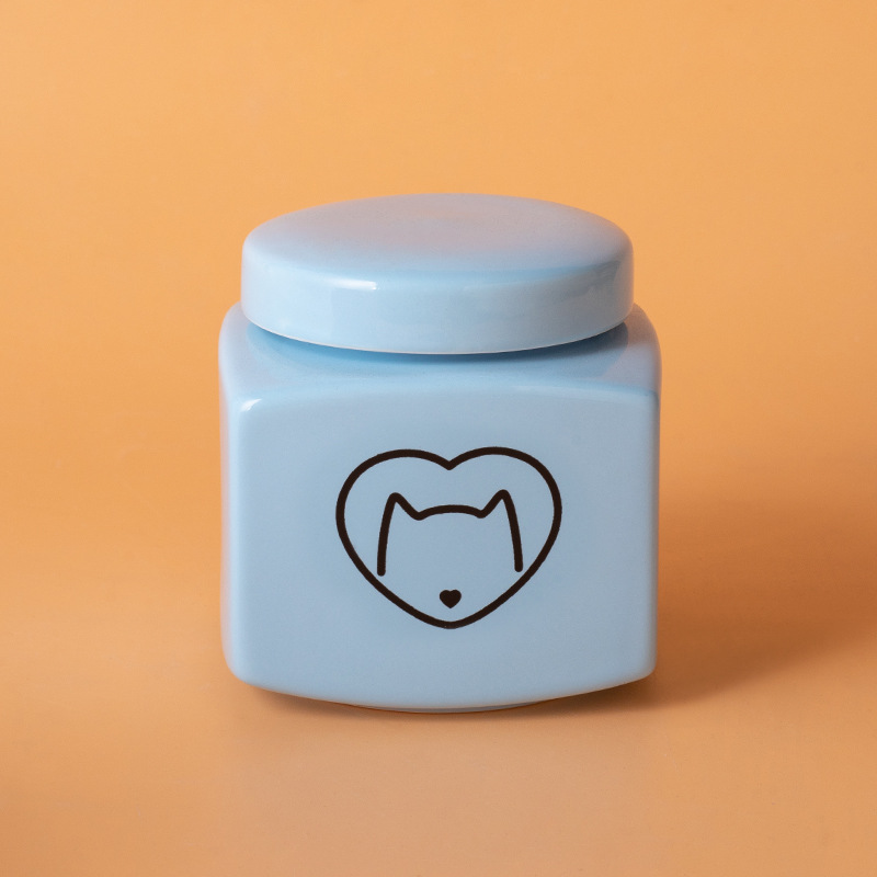 square funeral urn (blue) (black love cat head)