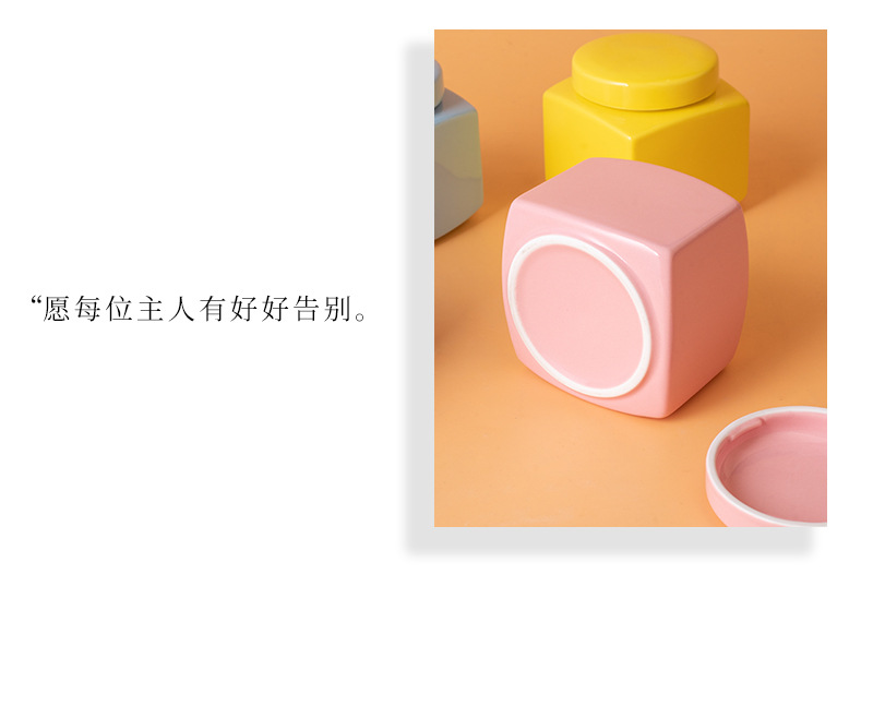 square funeral urn (pink) (golden bone)