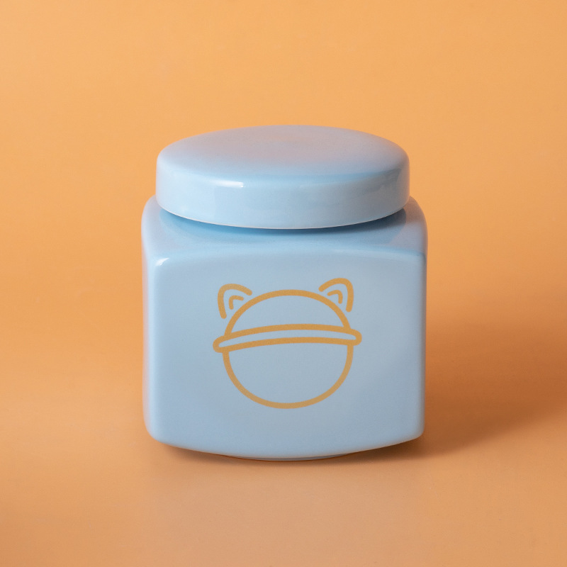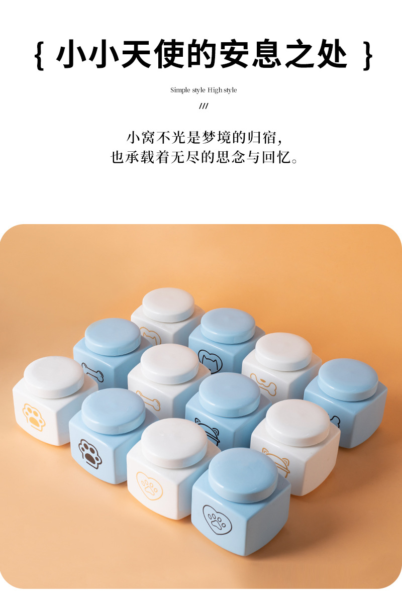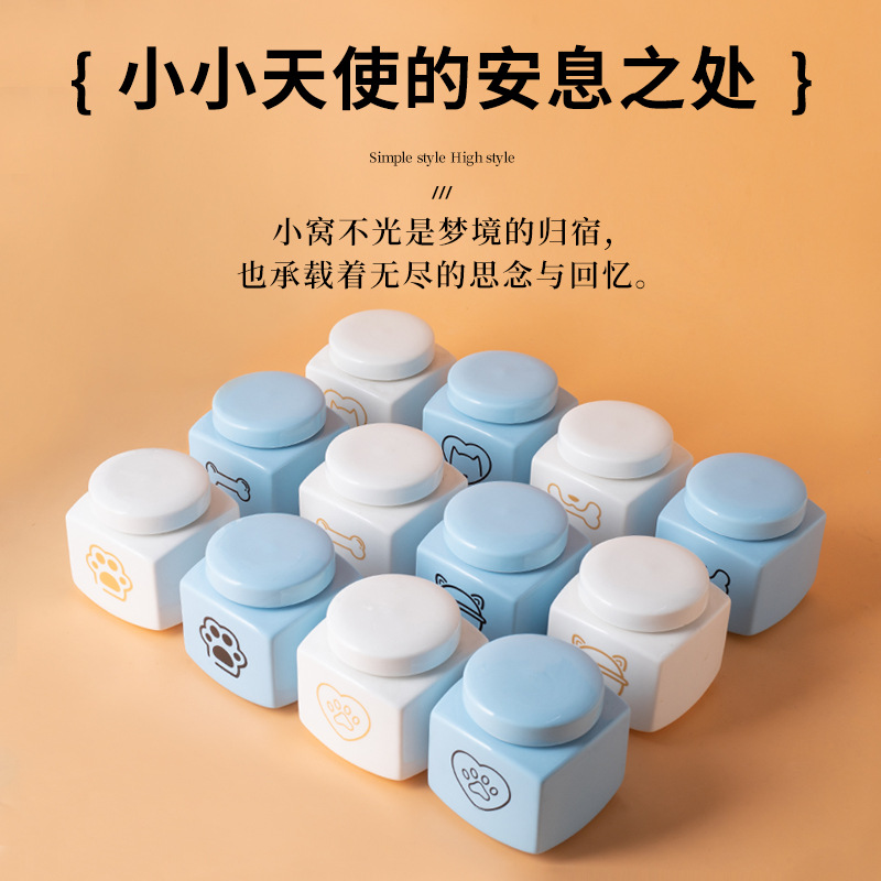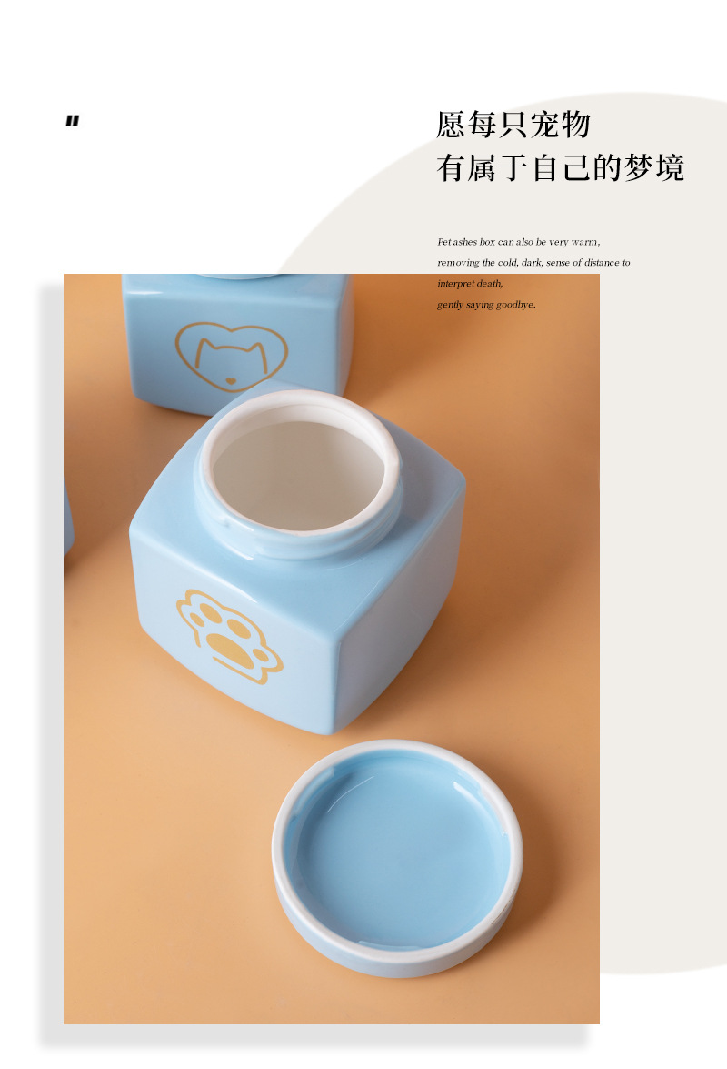 square funeral urn (blue) (golden love cat head)