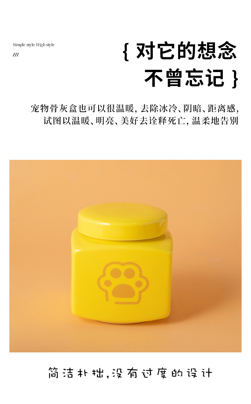 square funeral urn (yellow) (golden paw print)