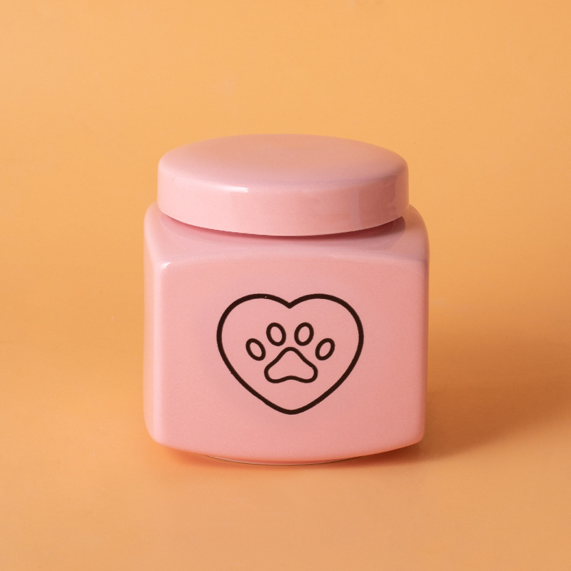 square funeral urn (pink) (black paw print)