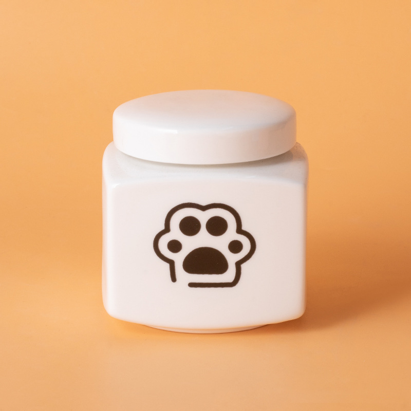 square funeral urn (white) (black paw print)