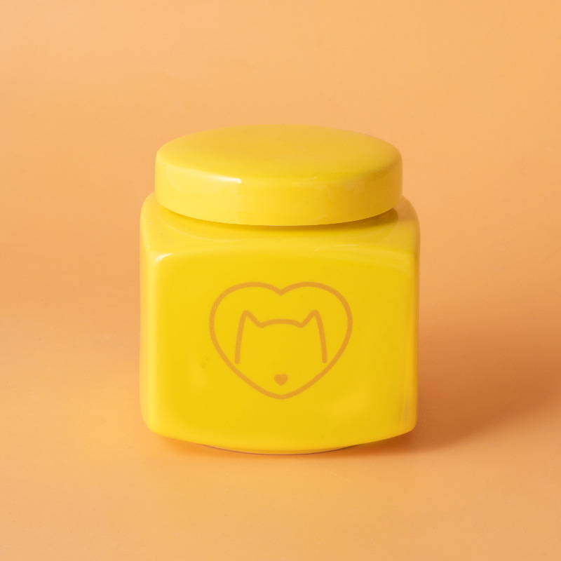 square funeral urn (yellow) (golden love cat head)