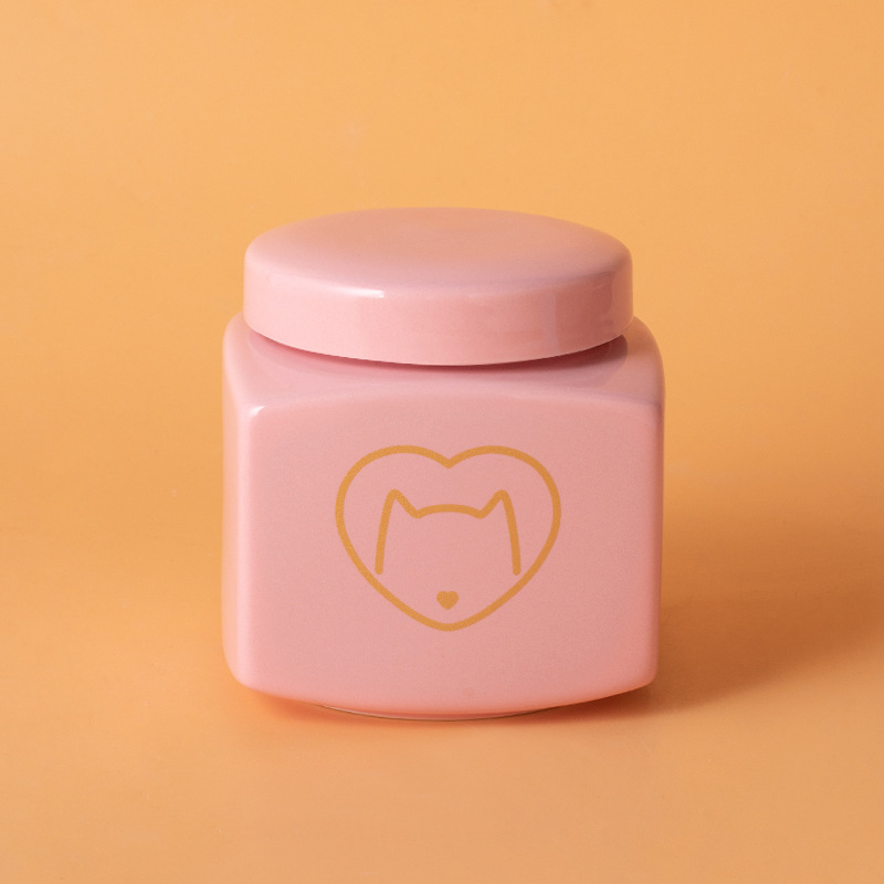 square funeral urn (pink) (golden love cat head)