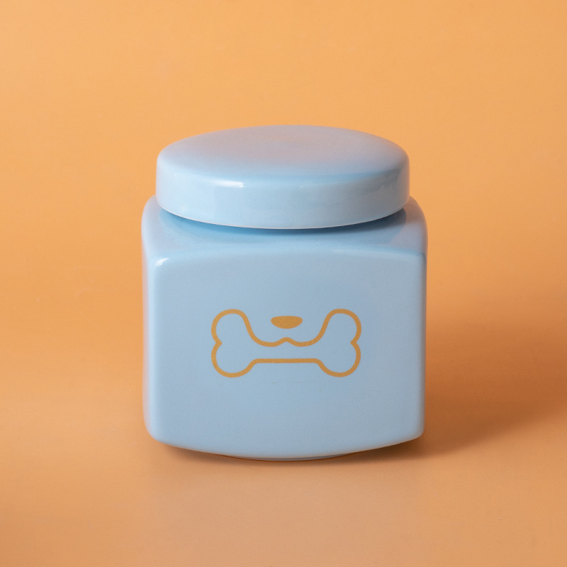 square funeral urn (blue) (golden dog biting head)