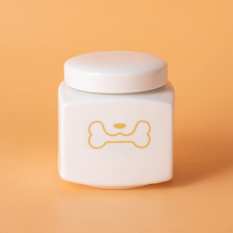 square funeral urn (white) (golden dog biting head)