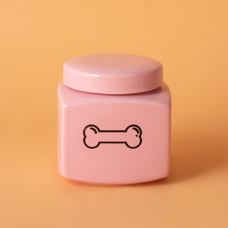 square funeral urn (pink) (golden dog biting head)
