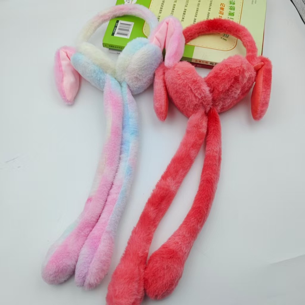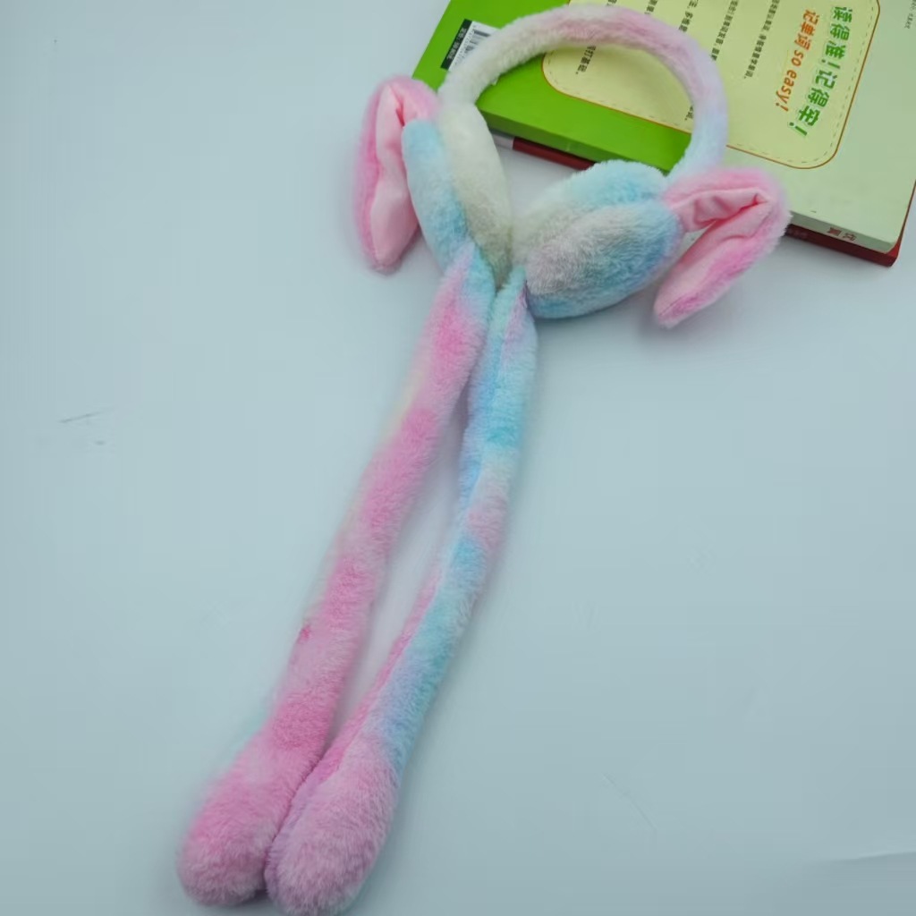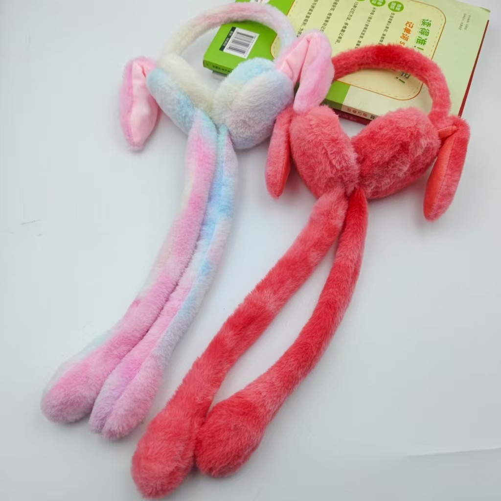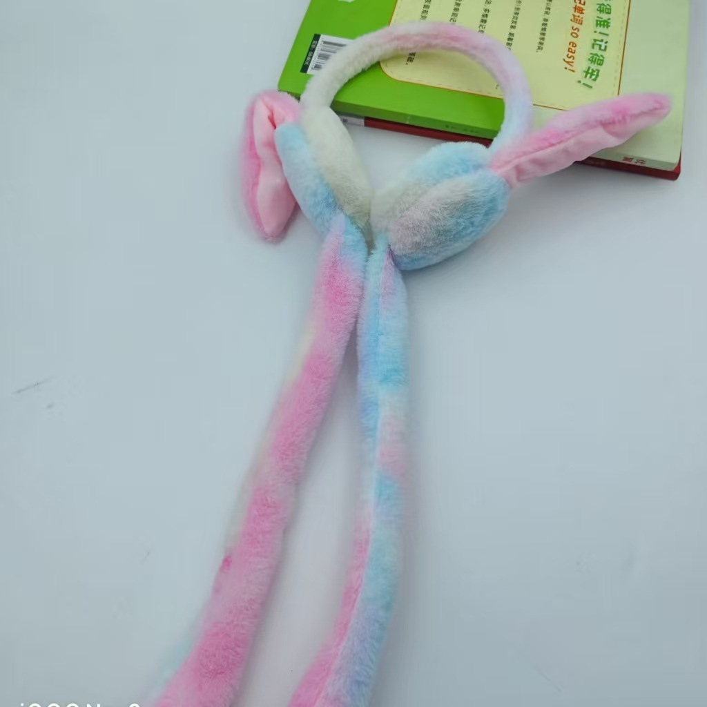 new rabbit ears plush tie-dyed earmuffs cute student ear cartoon moving airbag rabbit earmuffs cold-proof warm