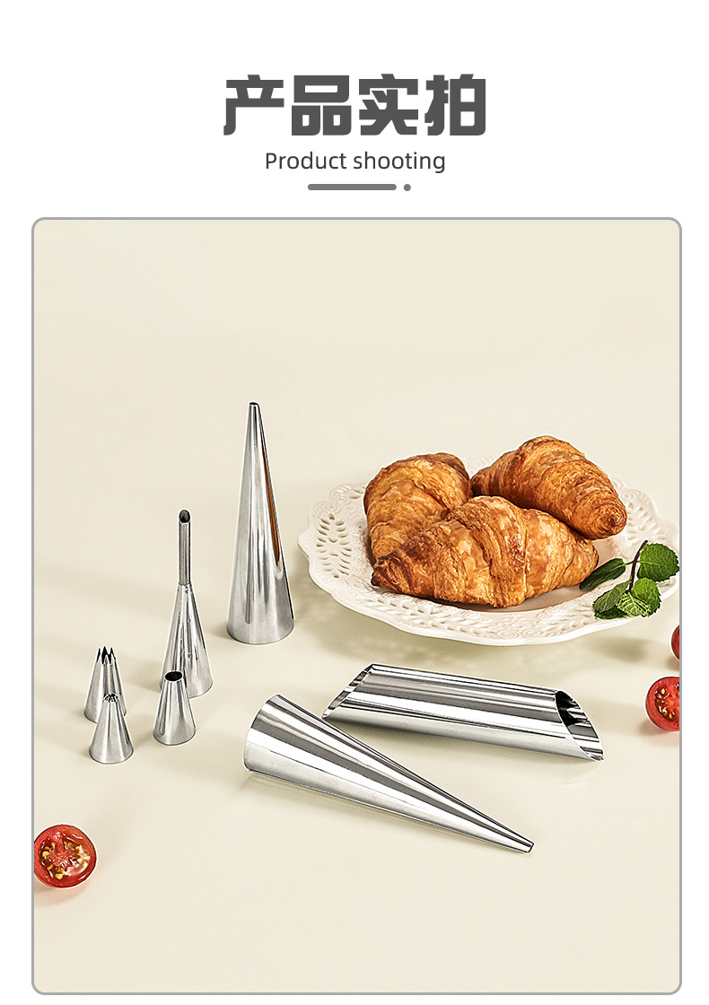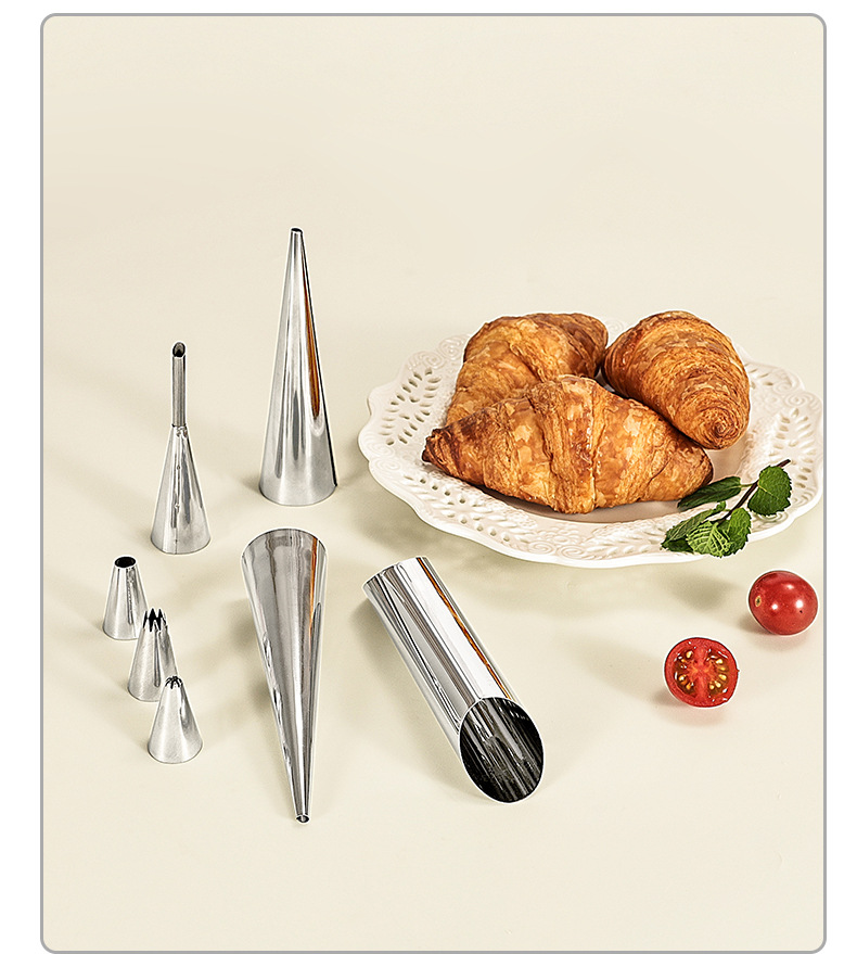 Stainless Steel Screw Tubes with Conical Shape, Flour Pastry Corners, Flat-Open Helical Tubes, Danish Butter Corn Screw Tubes, Bread DIY
