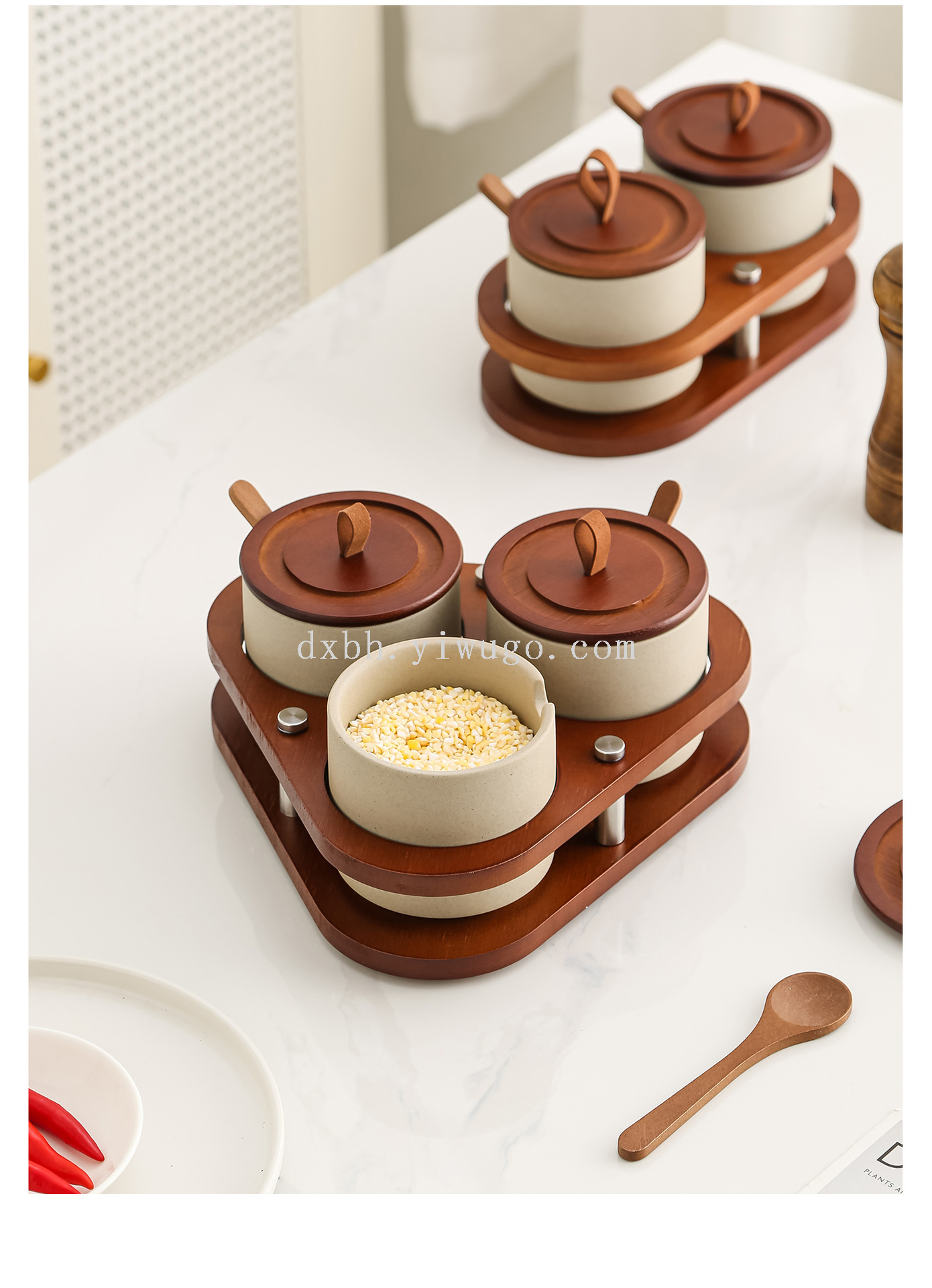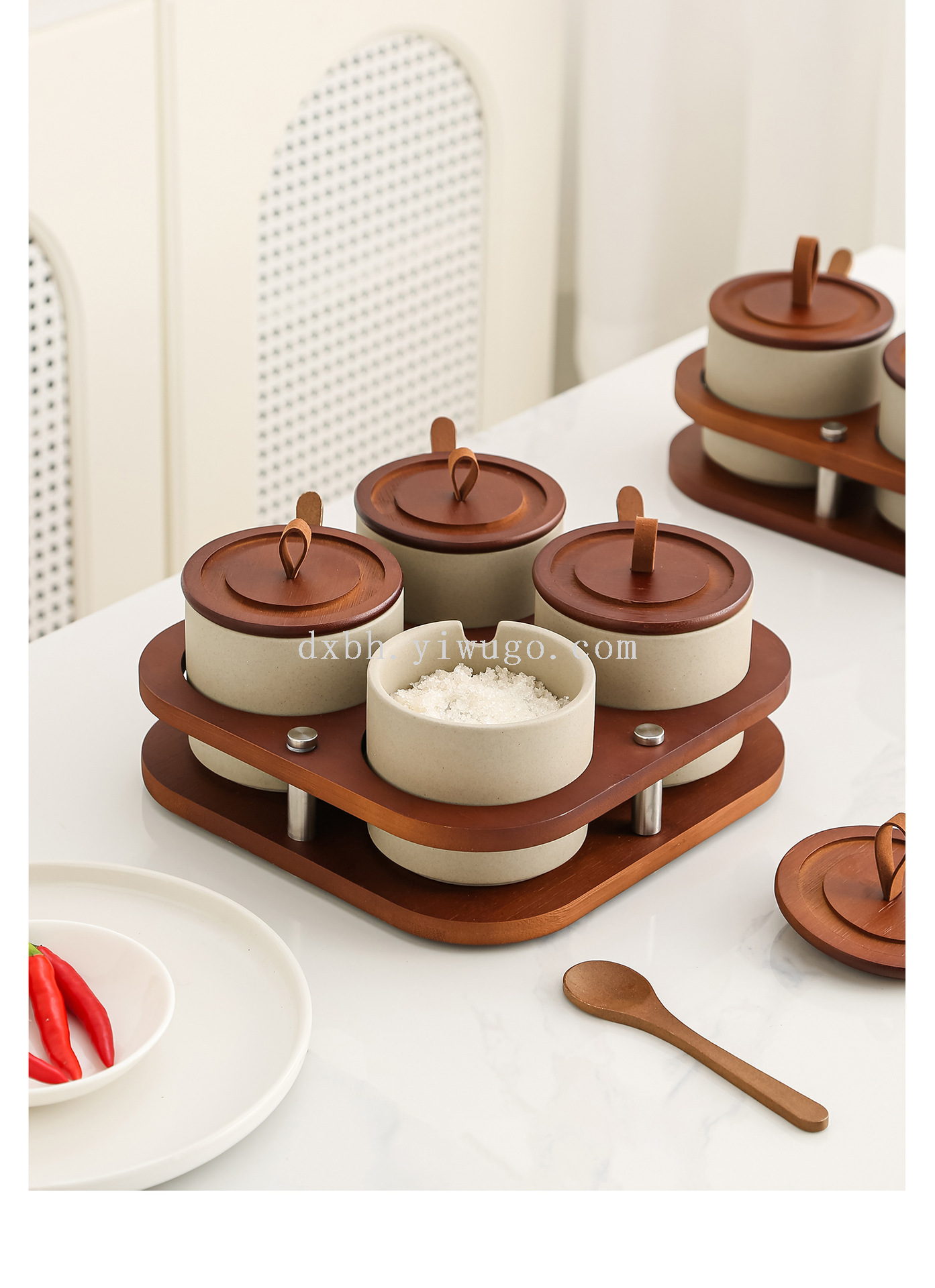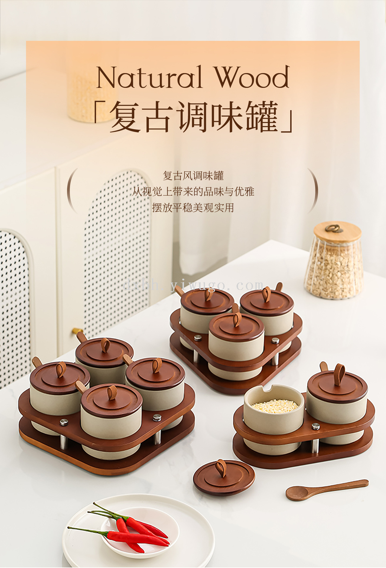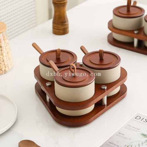 retro pottery clay seasoning box salt jar household seasoning box combination set kitchen spice jar spice jar seasoning jar