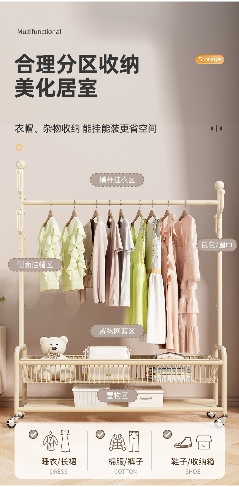 【⭐upgrade] double layer (milky white) 120cm-large mesh basket-special thick tube