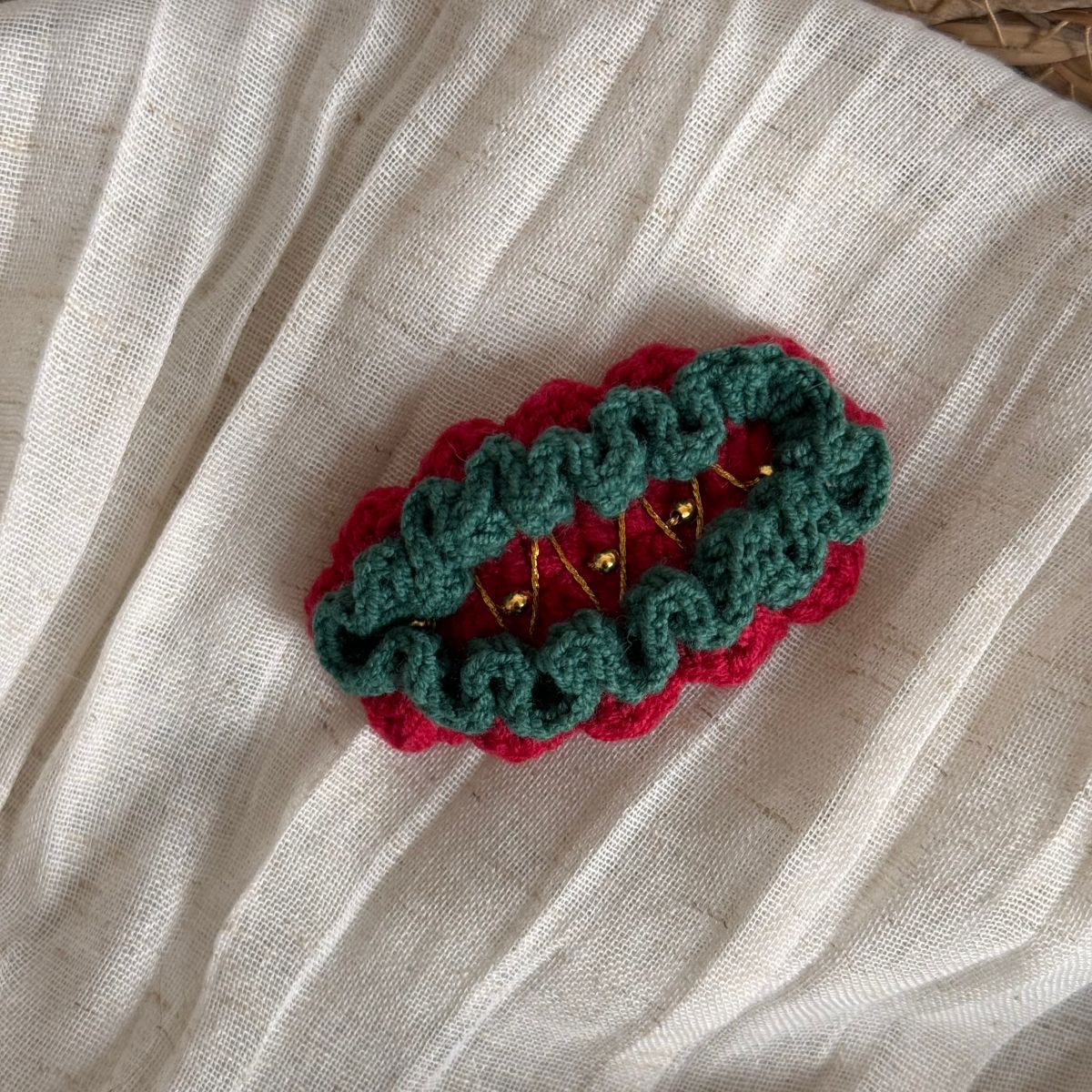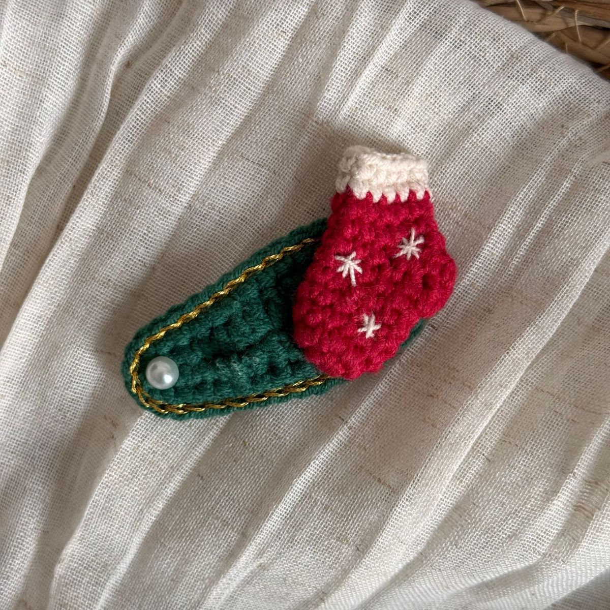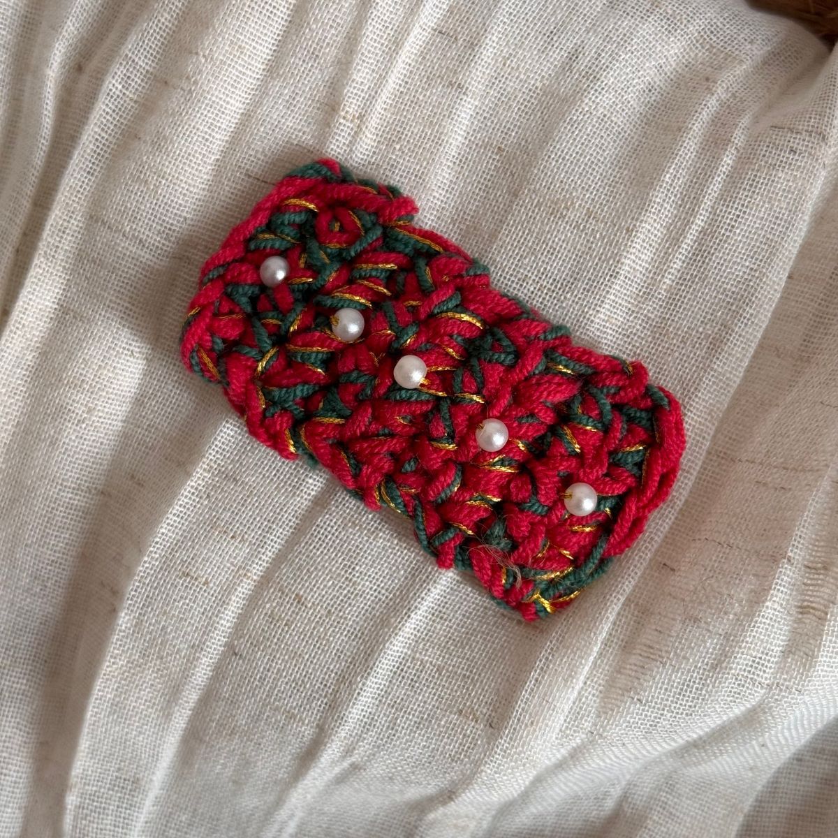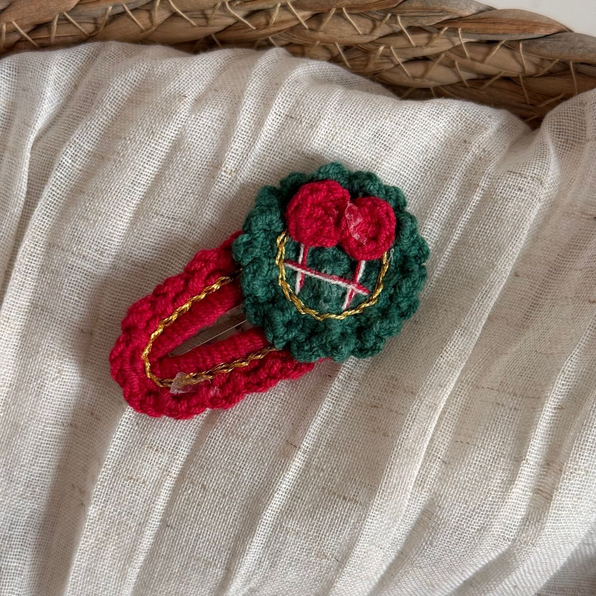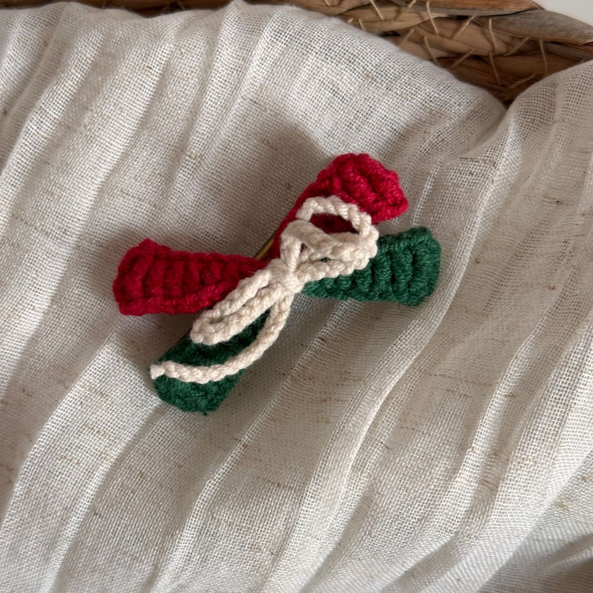 christmas wool clip-red coffee bottom green knot