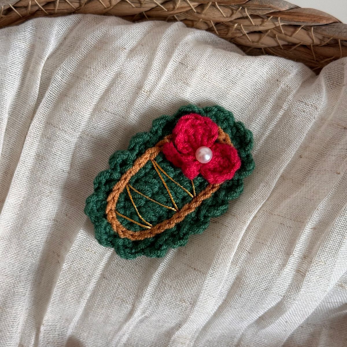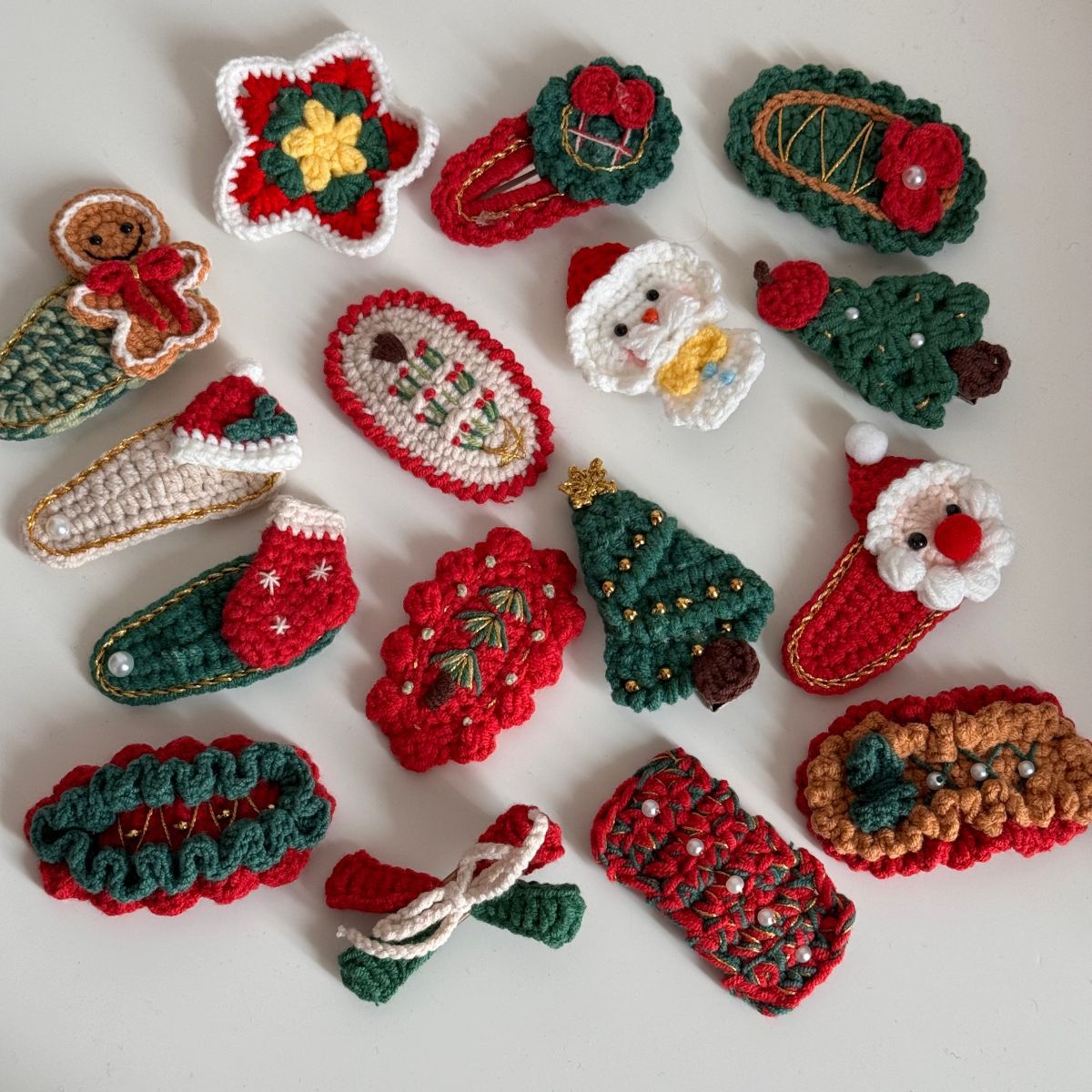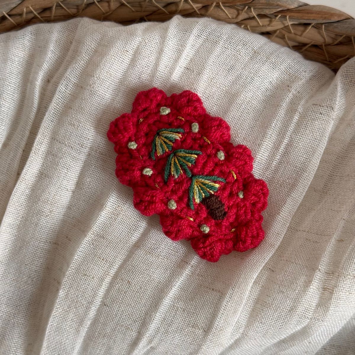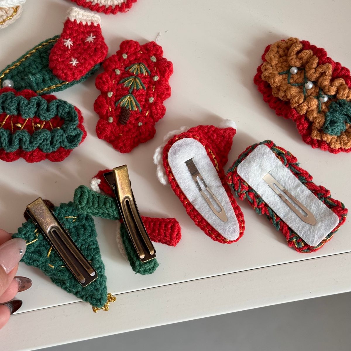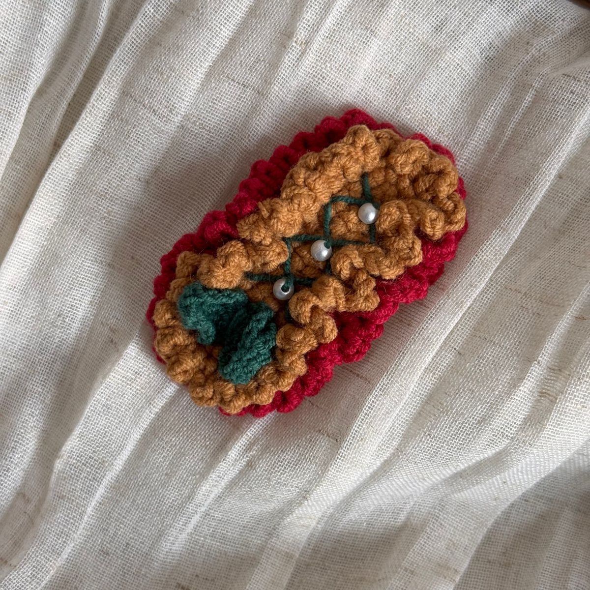 christmas wool clip-red coffee bottom green knot