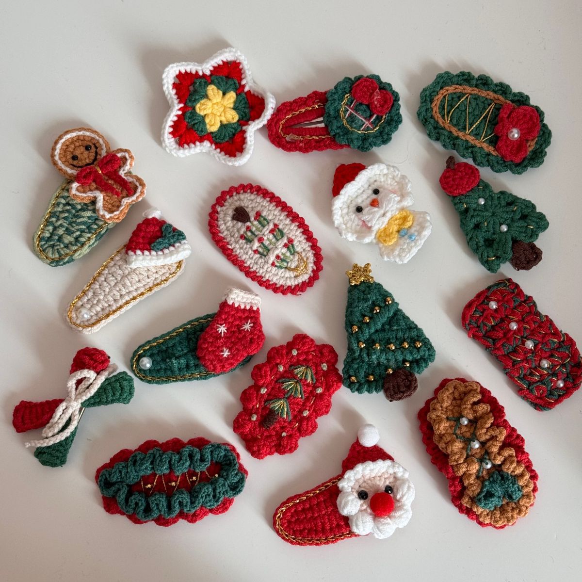 christmas wool clip-green cake red knot