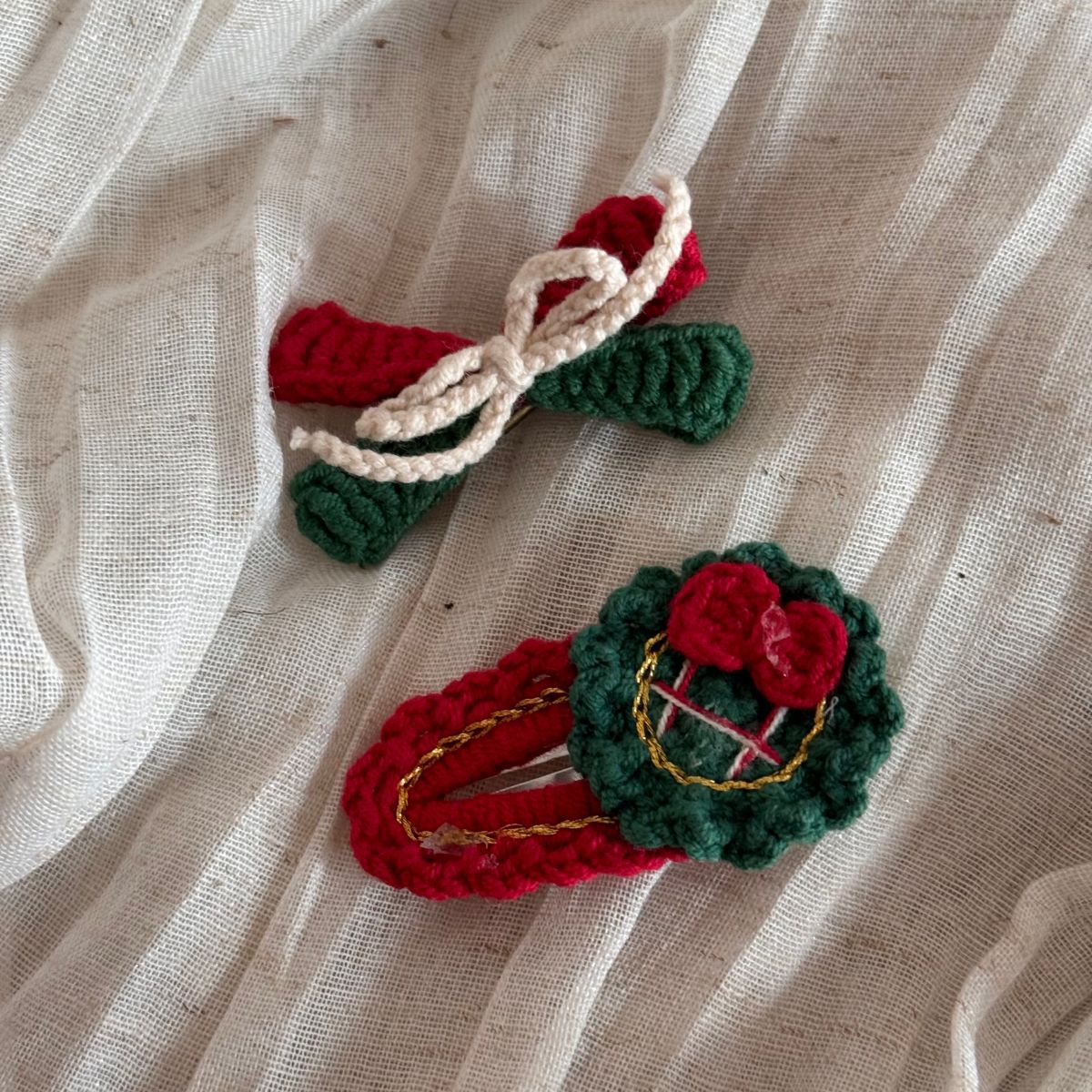 christmas wool clip-red background green lace