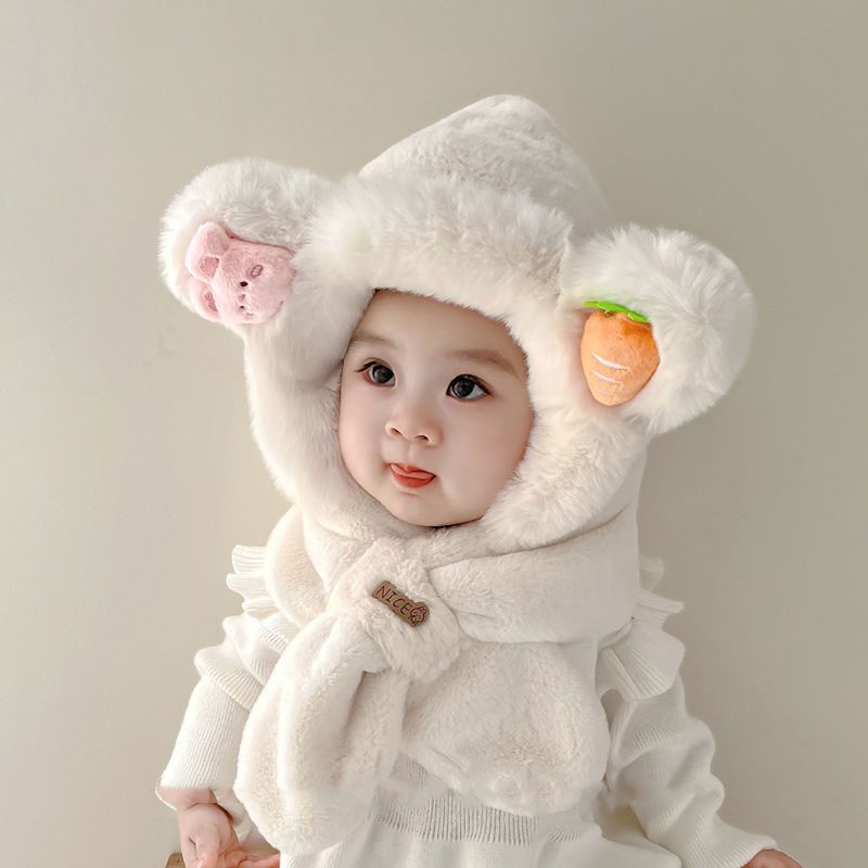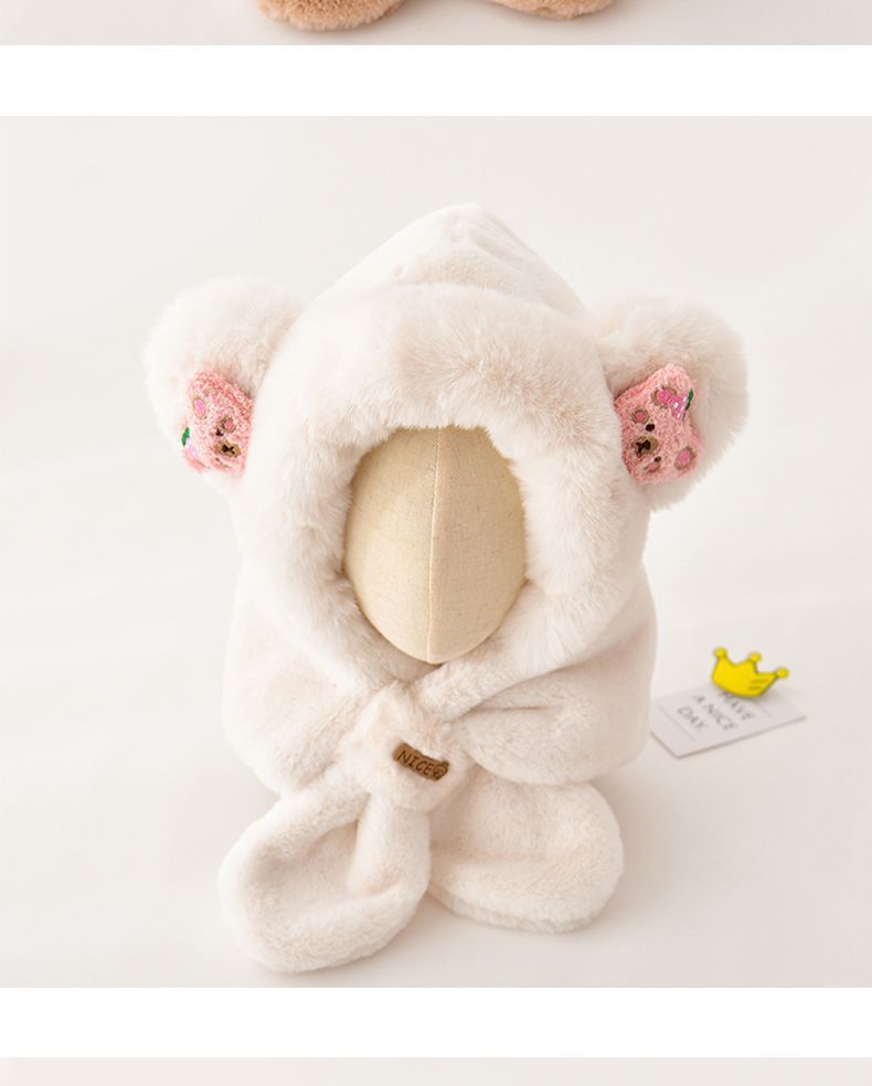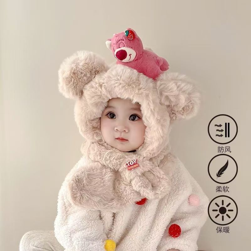 children's two-piece set hat top strawberry bear-beige
