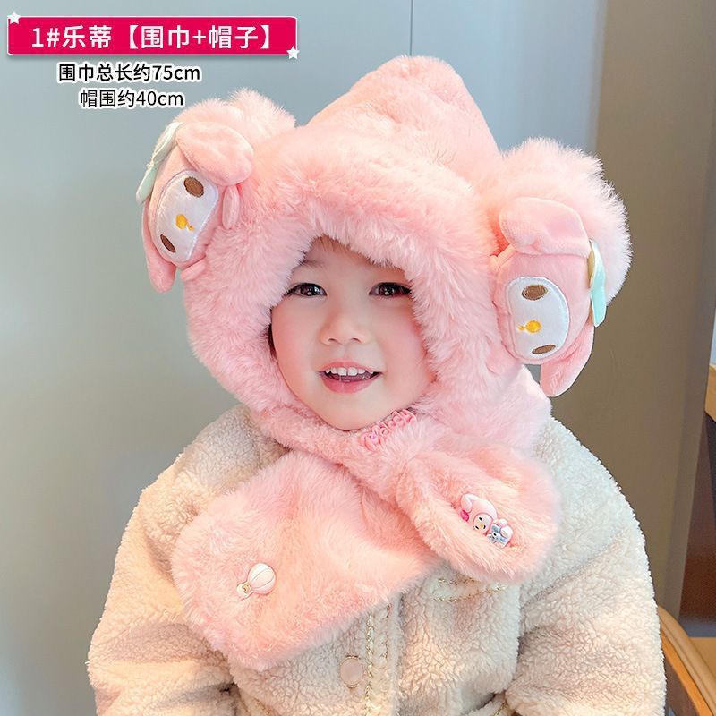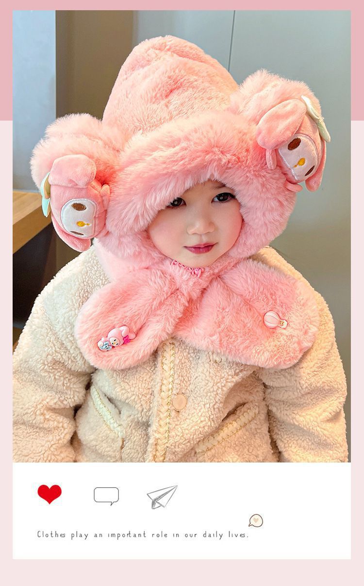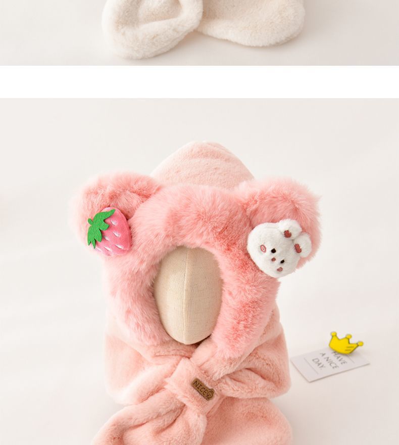 children's two-piece set hat top strawberry bear -- pink