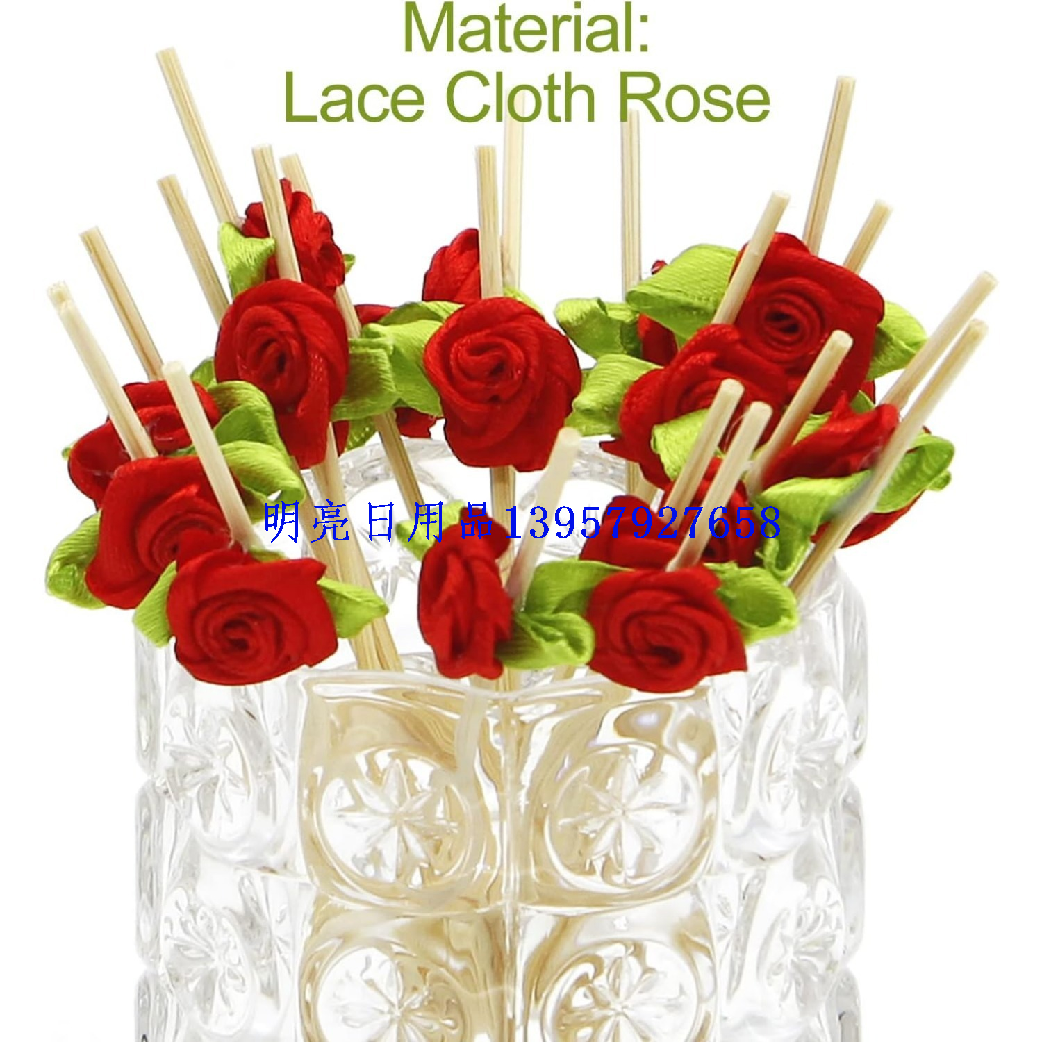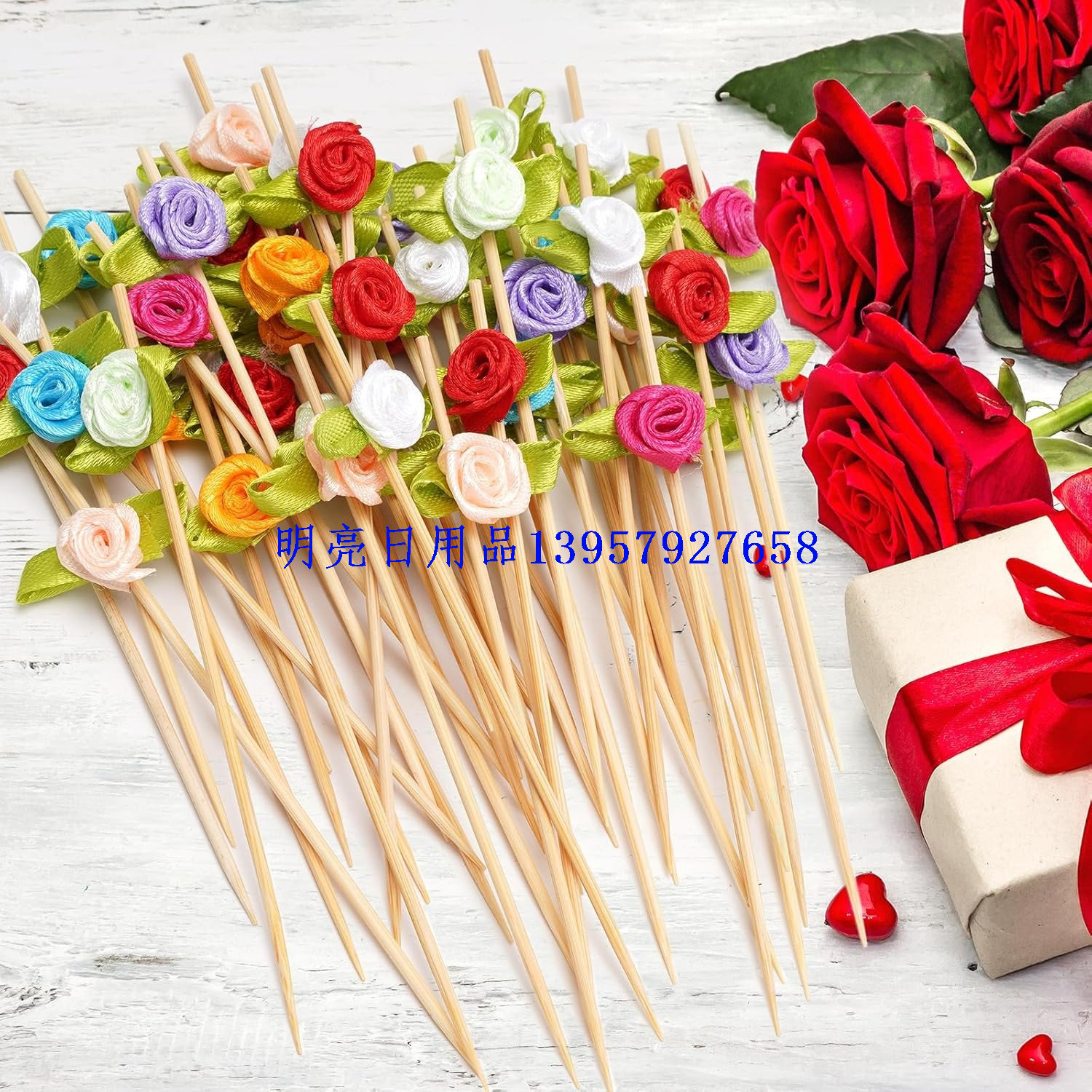 【名称】:绸段玫瑰花签水果签