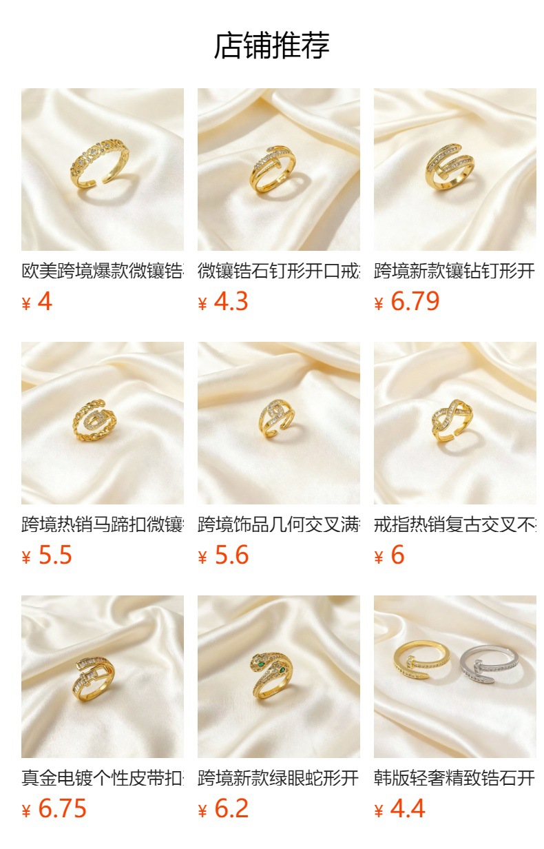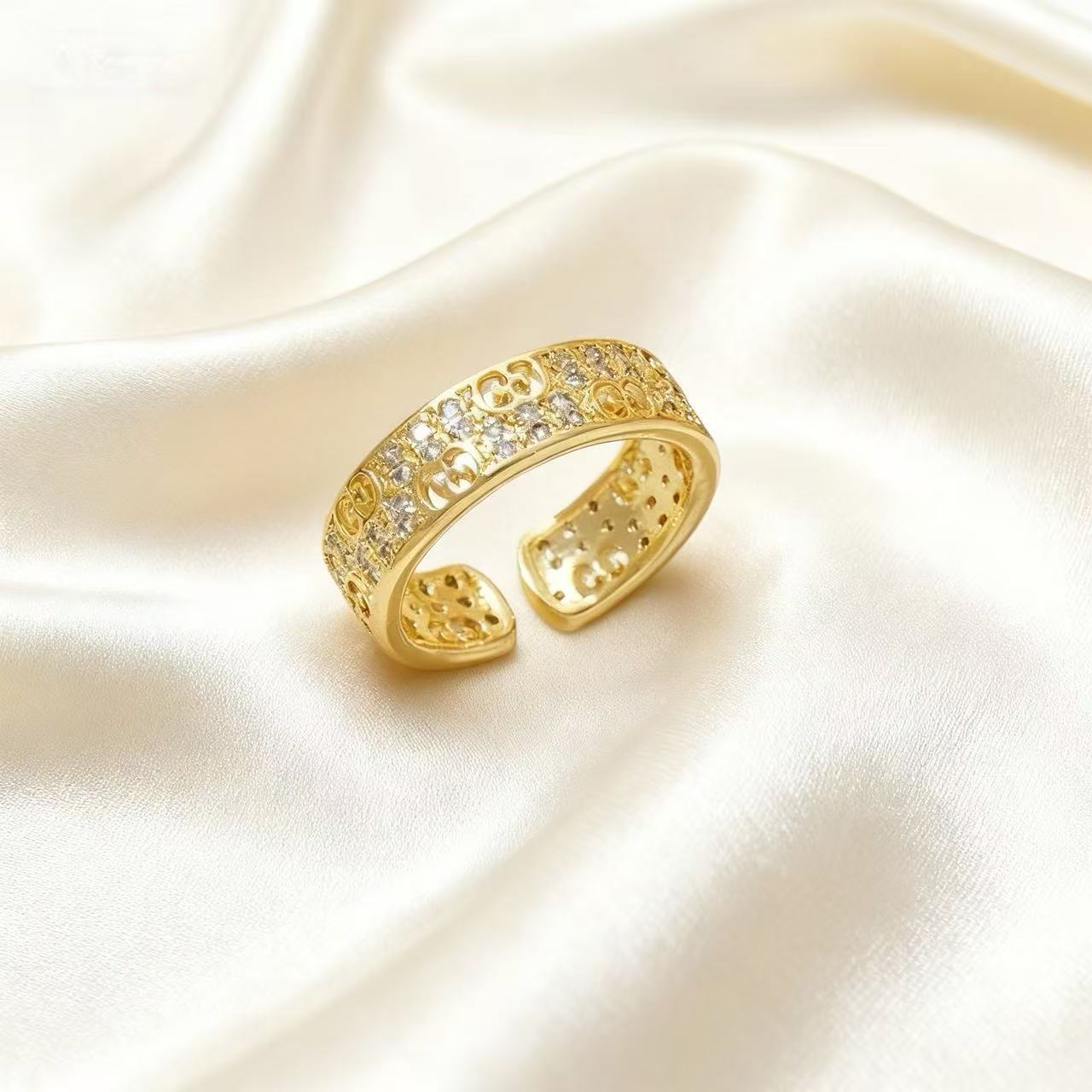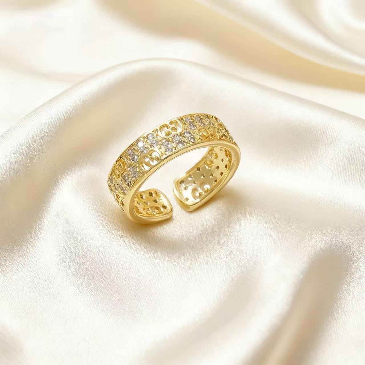 light luxury minority advanced cold style copper zircon gold-plated ring opening adjustable all-match fashionable index finger ring wholesale 中文版