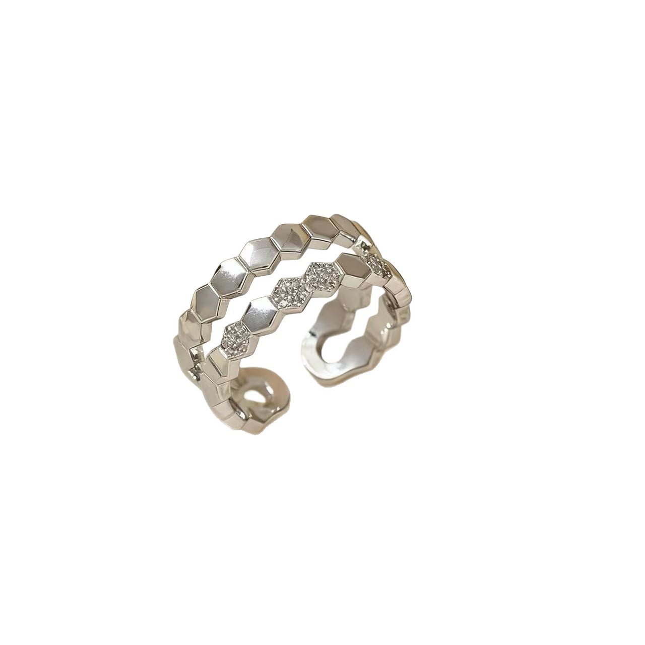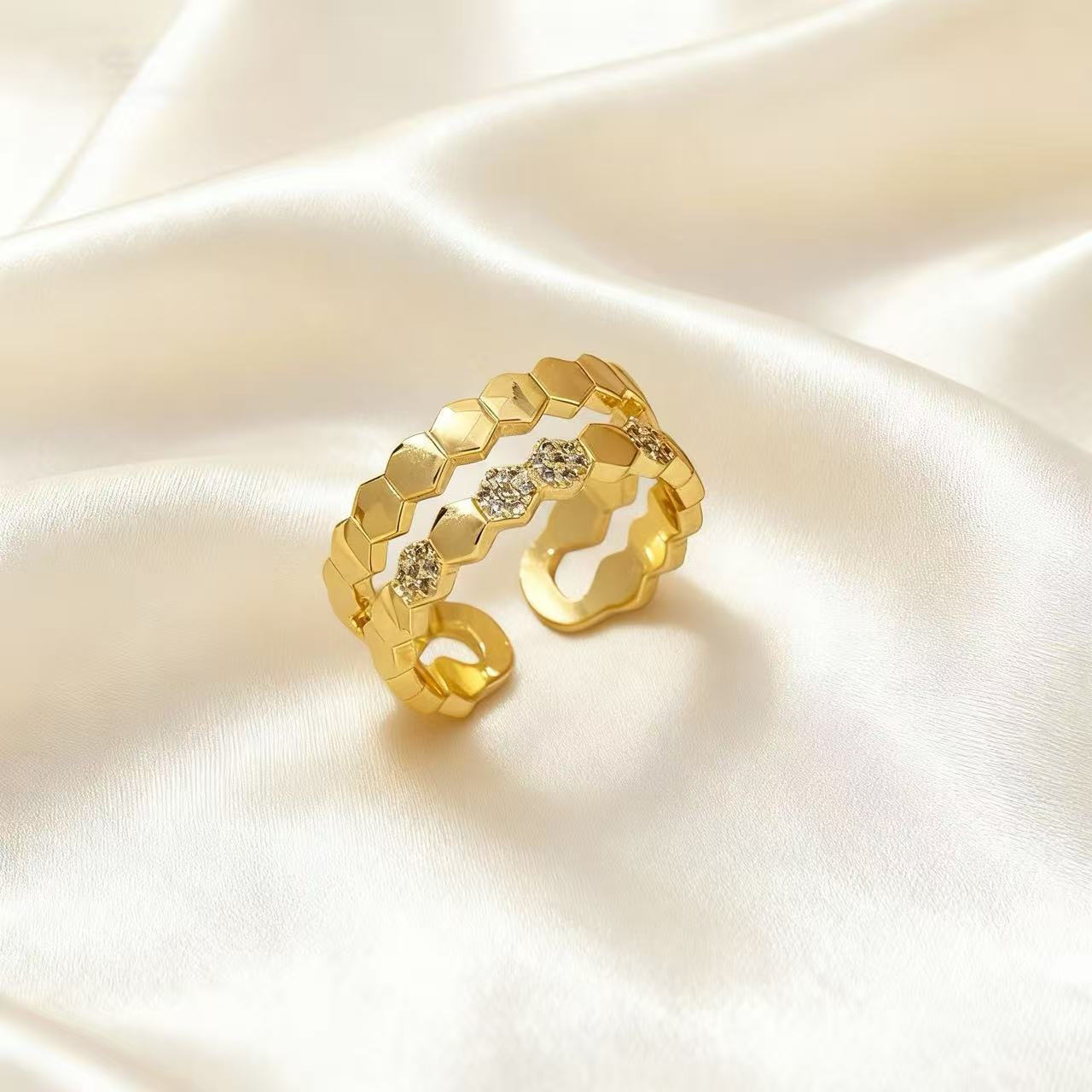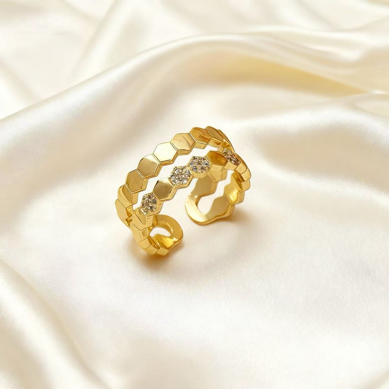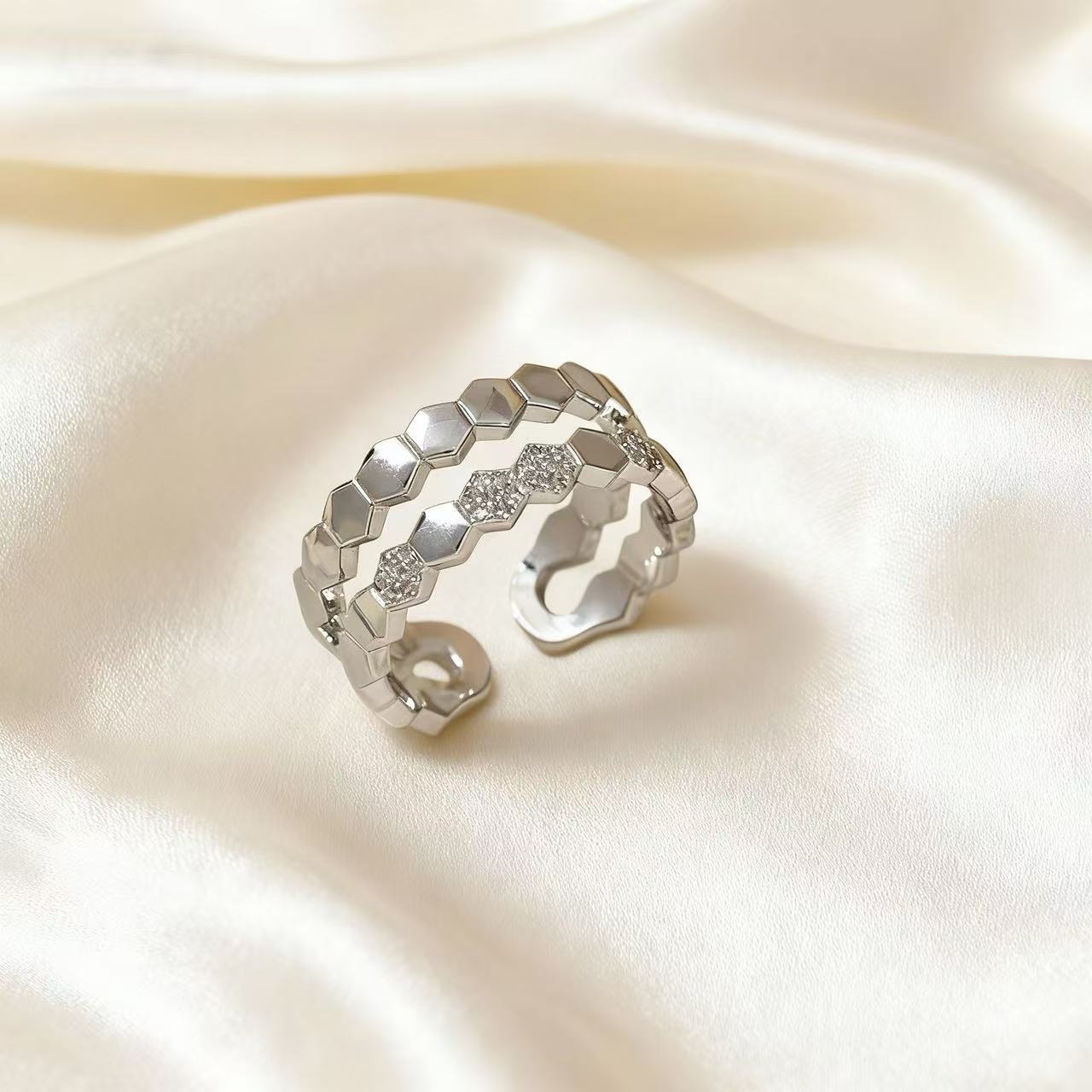 song hye gyo wearing honeycomb open ring female light luxury high sense exquisite refined grace double ring adjustable all-match earrings 中文版
