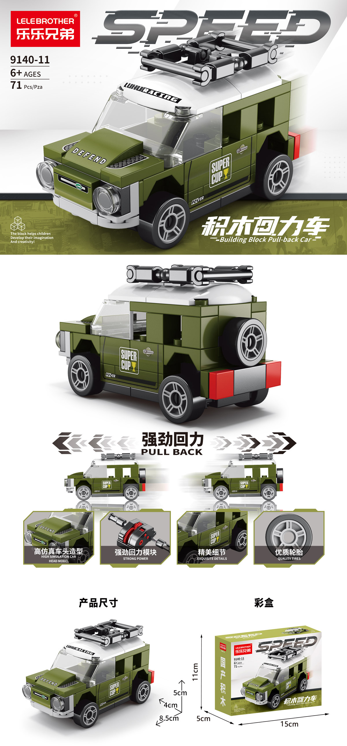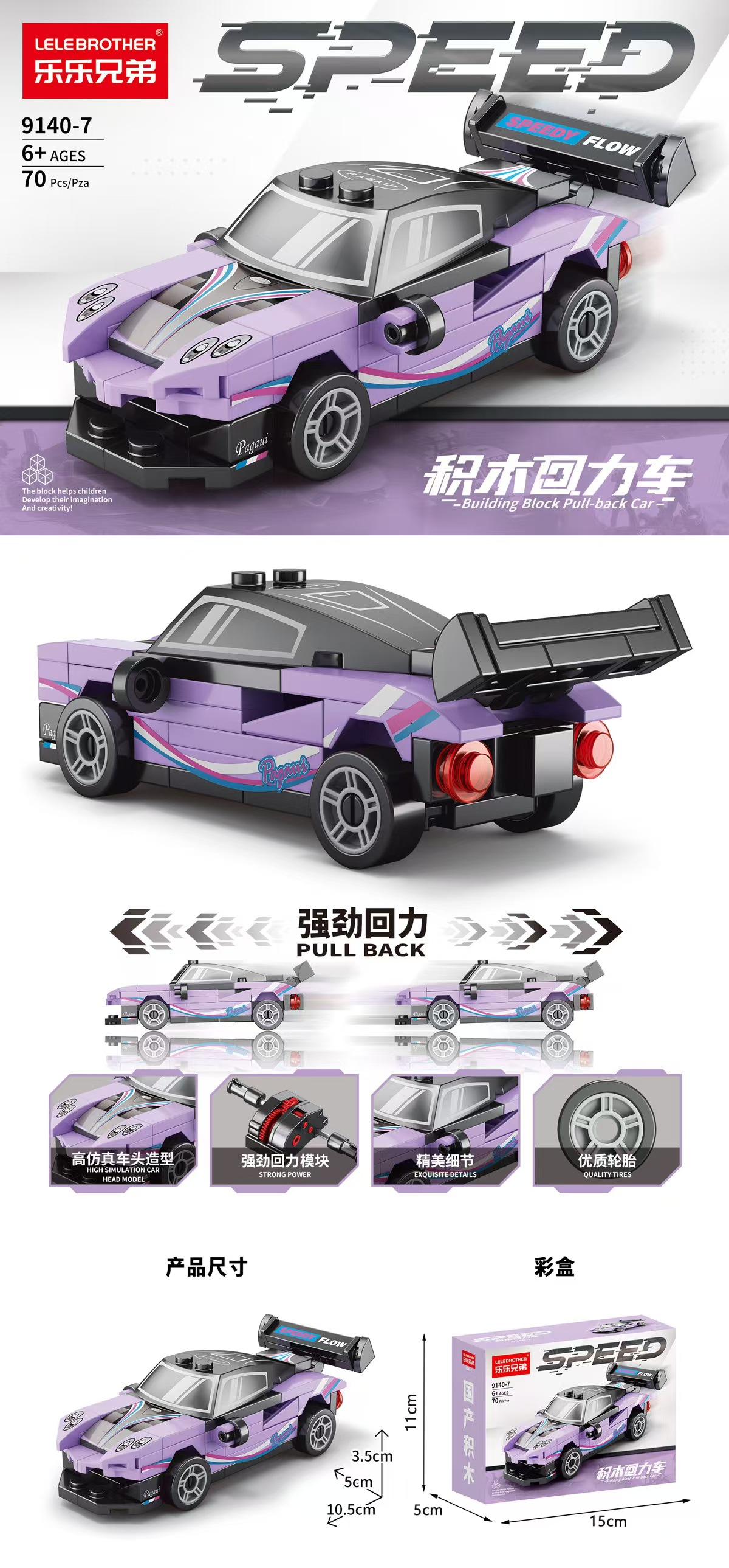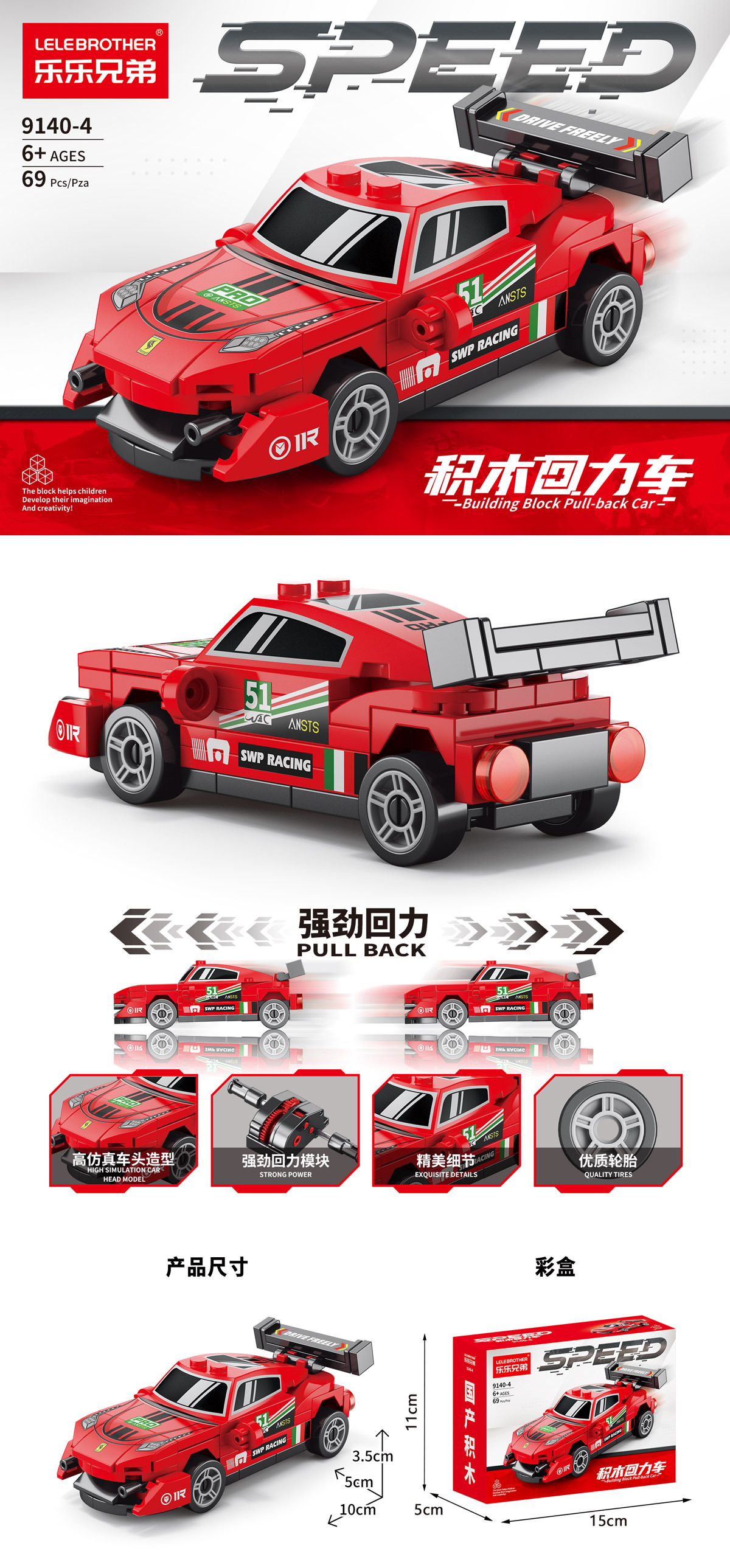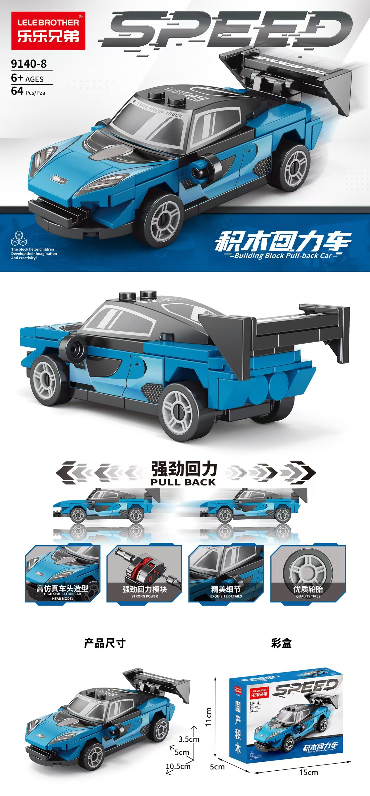 【货号名称】:乐乐兄弟四格回力车积木