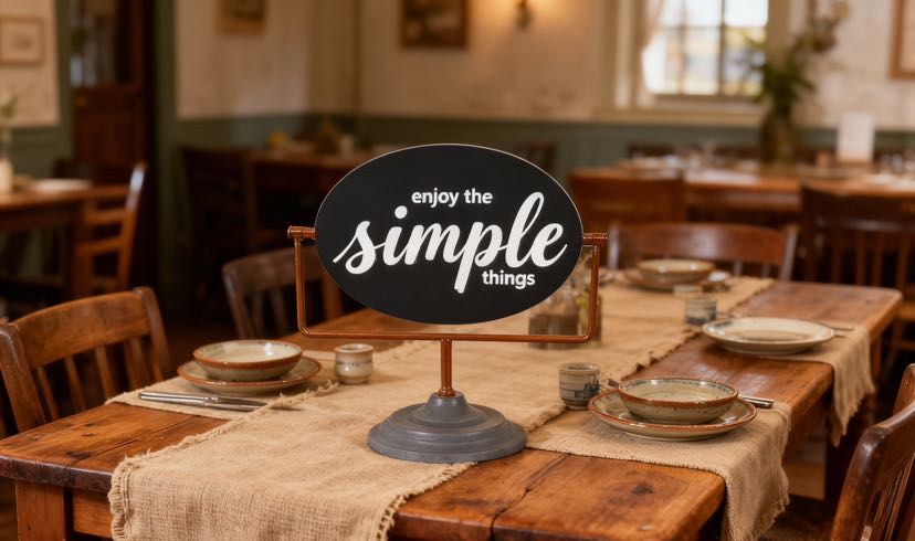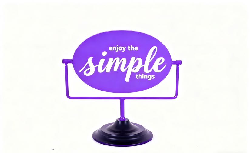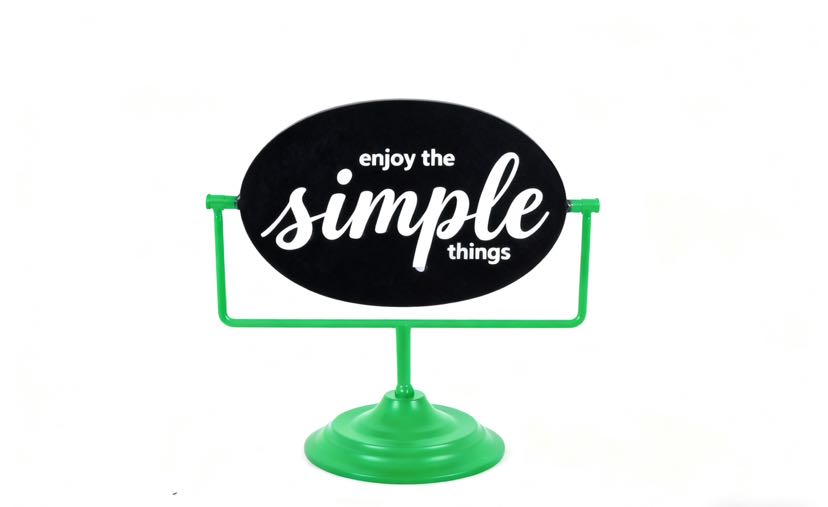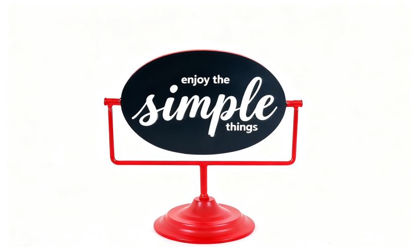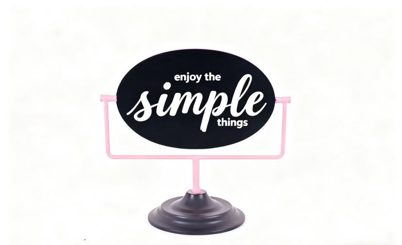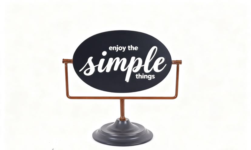 Classic black signboards paired with multi-colored iron art stands, printed with the slogan "enjoy the simple things", the iron art material is both sturdy and textured. Placed in the living room, study, or entrance hall, it instantly adds a sense of simplicity to the home space. The stands are available in a variety of colors and can be flexibly matched with the soft decoration style, making it a small and clever idea to light up the corner of your home.