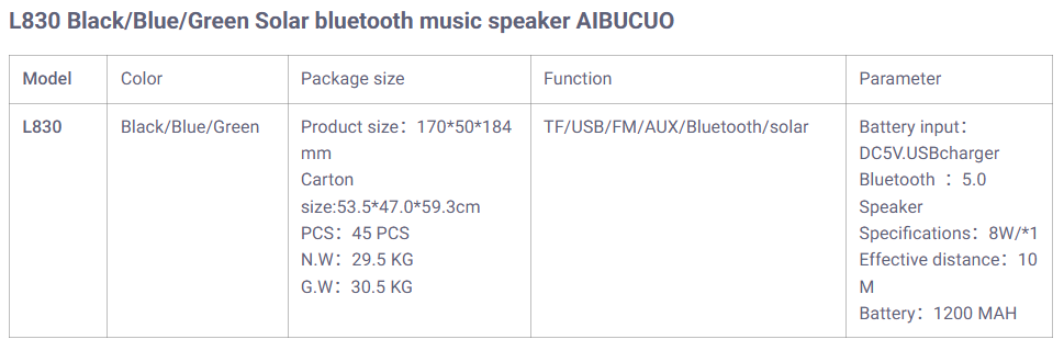 aibucuo super hot outdoor portable bottle multi-function usb solar bluetooth music speaker with light 中文版