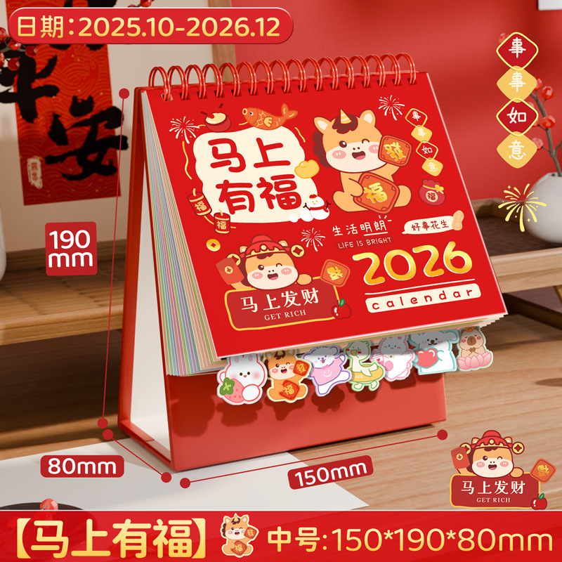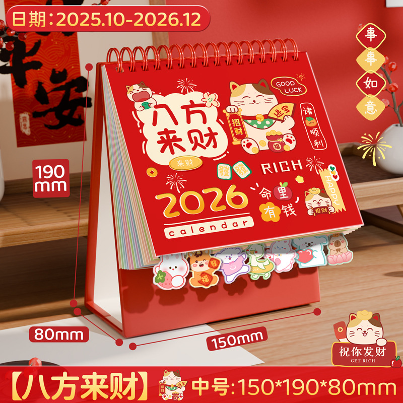 large quilimen 2026 cartoon label desk calendar-wealth comes from every direction-210 * 195mm