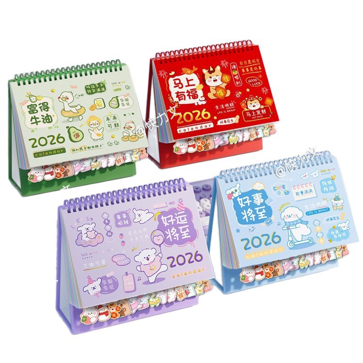 medium size quilimen 2026 cartoon label desk calendar-soon lucky-150 * 190mm