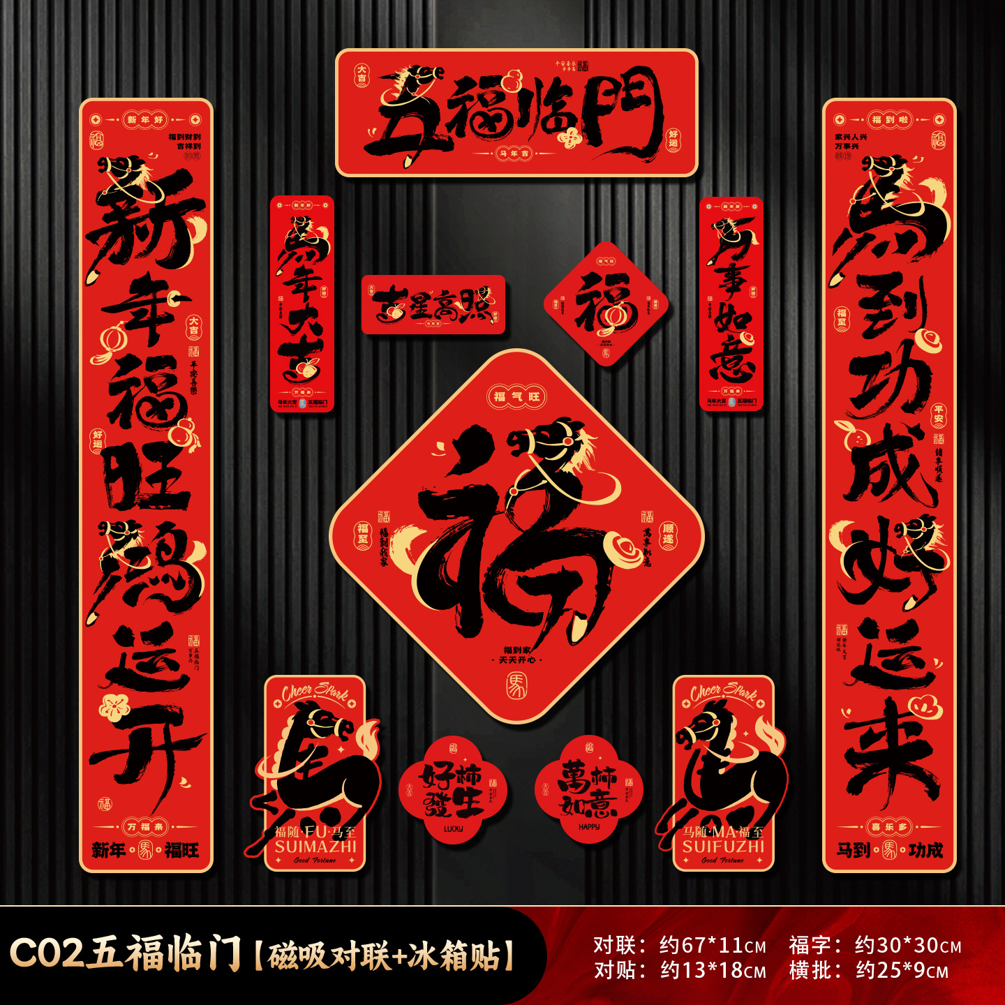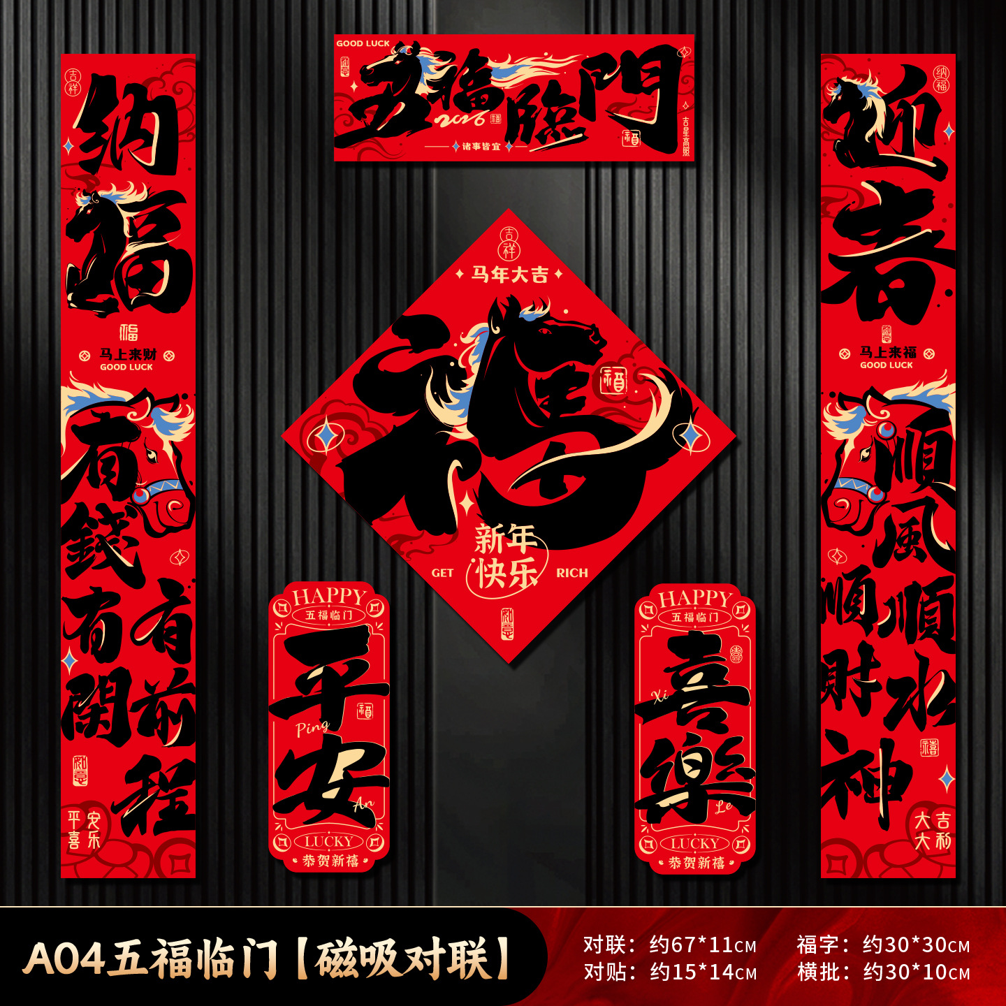 [year of the horse] couplet + [happy new year] refridgerator magnets