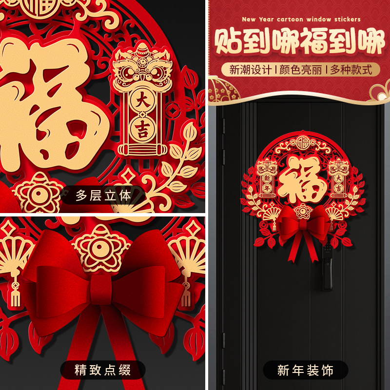 lucky word door sticker 2026 new year horse year new new year decoration spring festival door magnetic felt window sticker new year painting