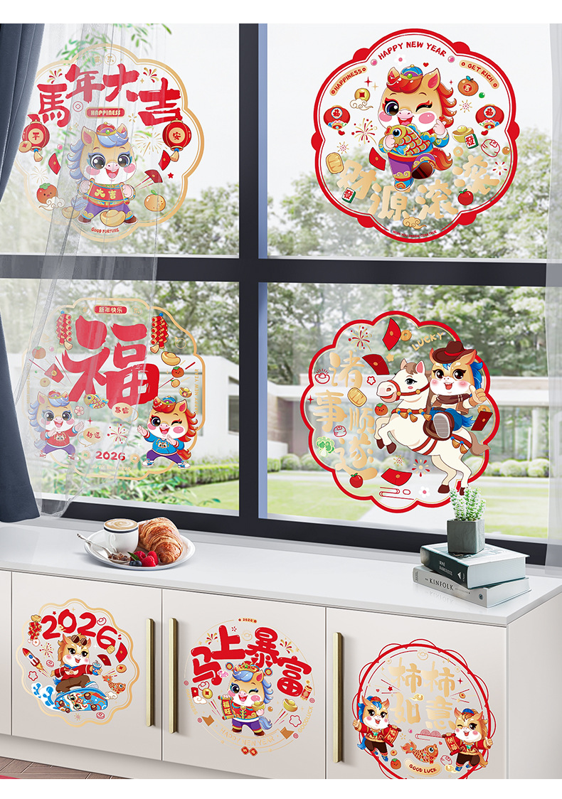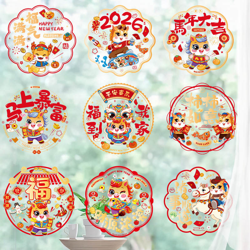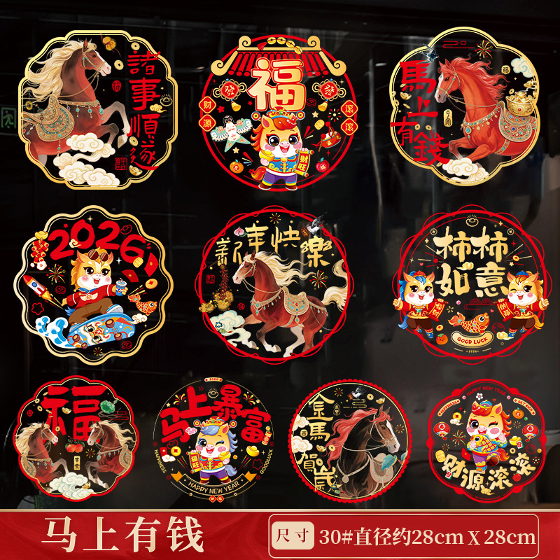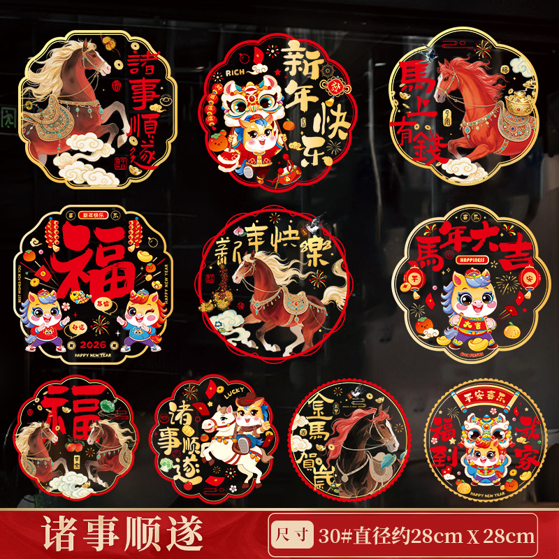 30# golden horse new year-color static sticker (10 pieces mixed)