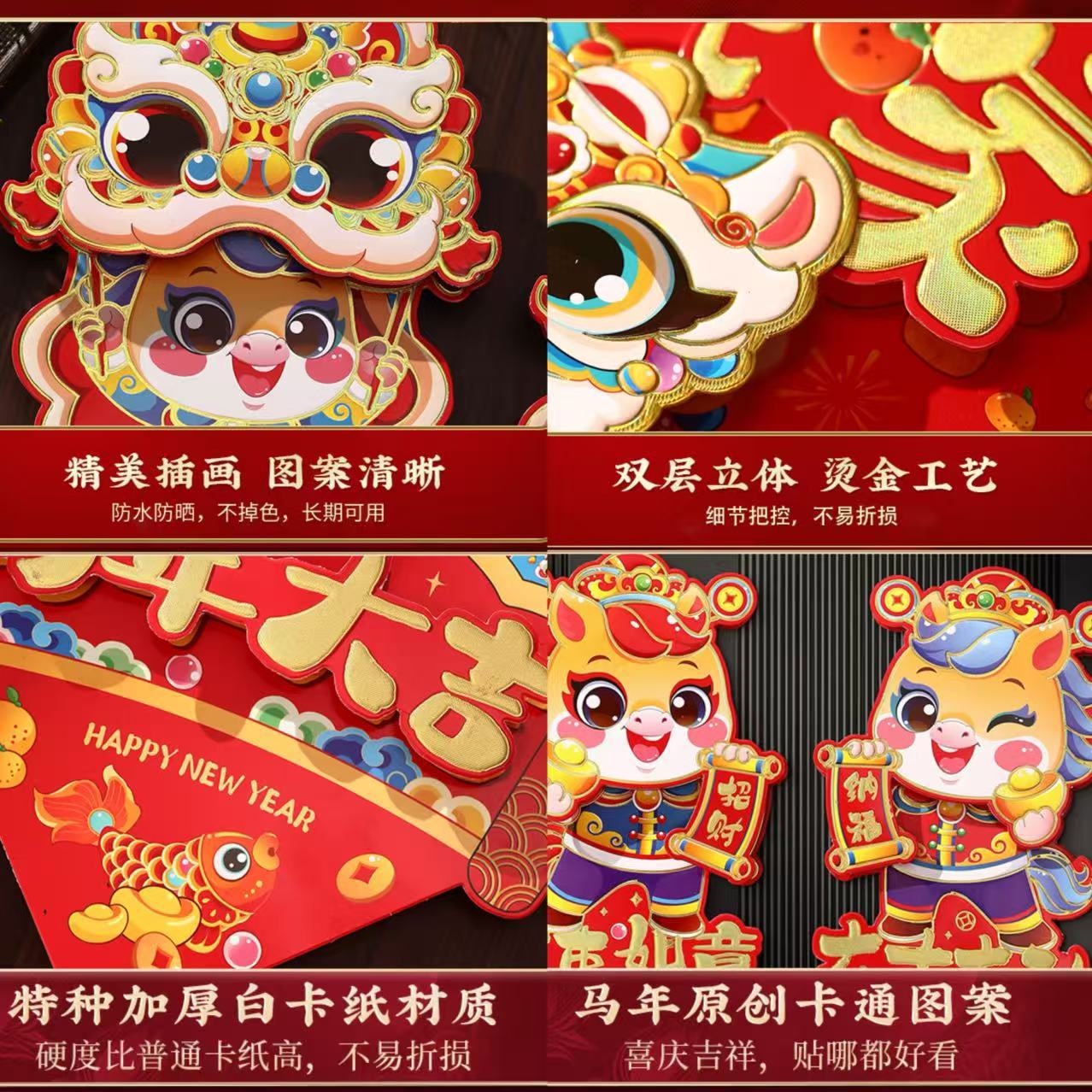 gilding three-dimensional couplet golden horse sending blessing + three-dimensional fu a + pair stickers (free dispensing)