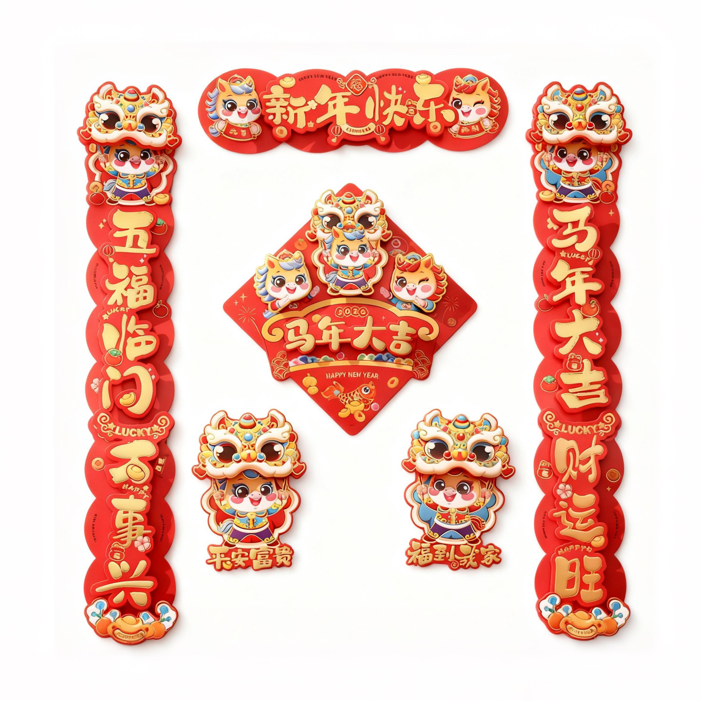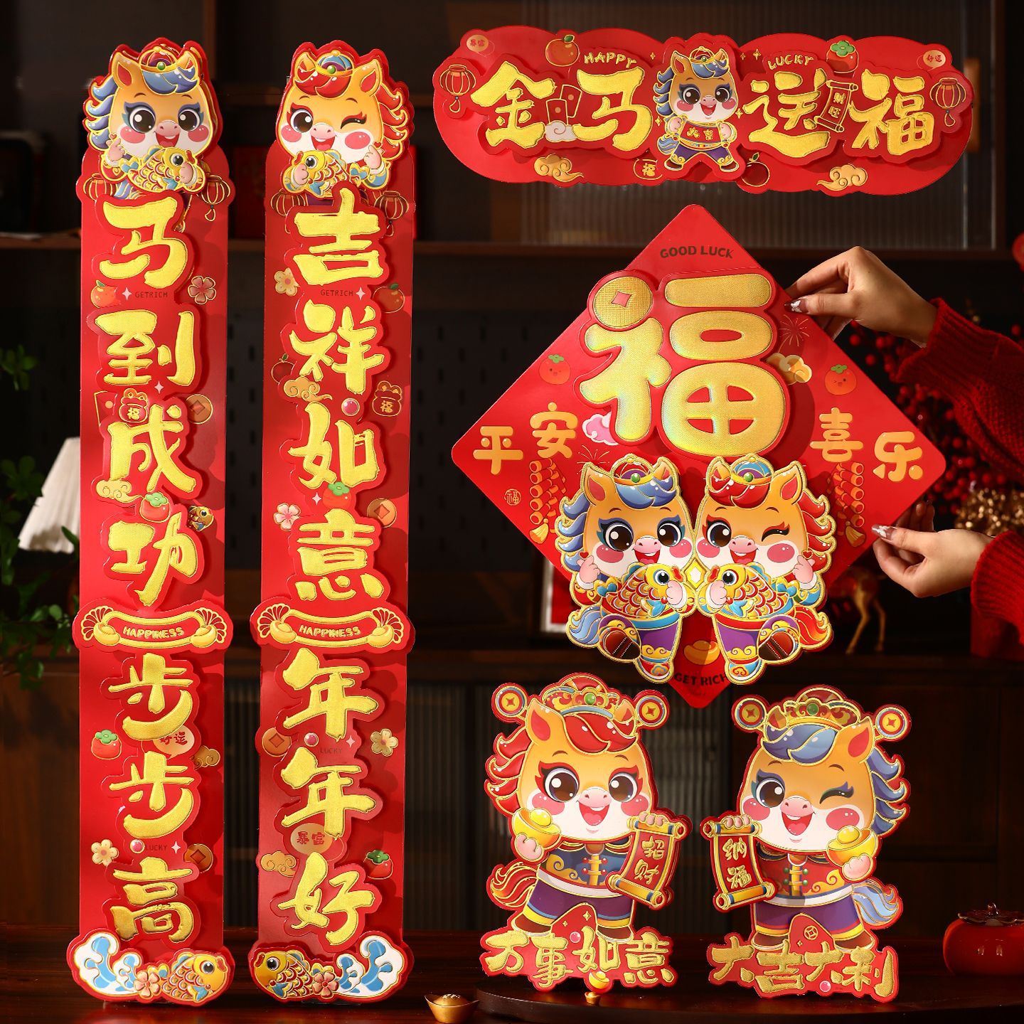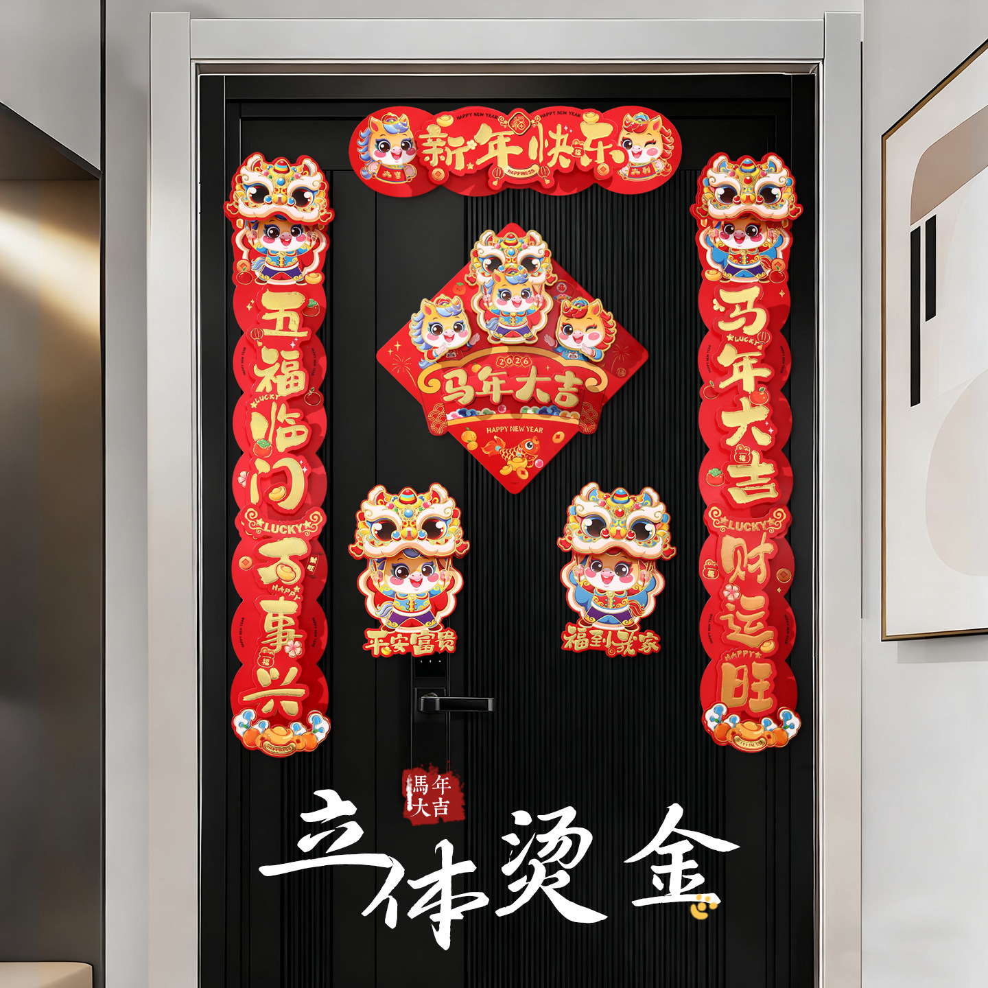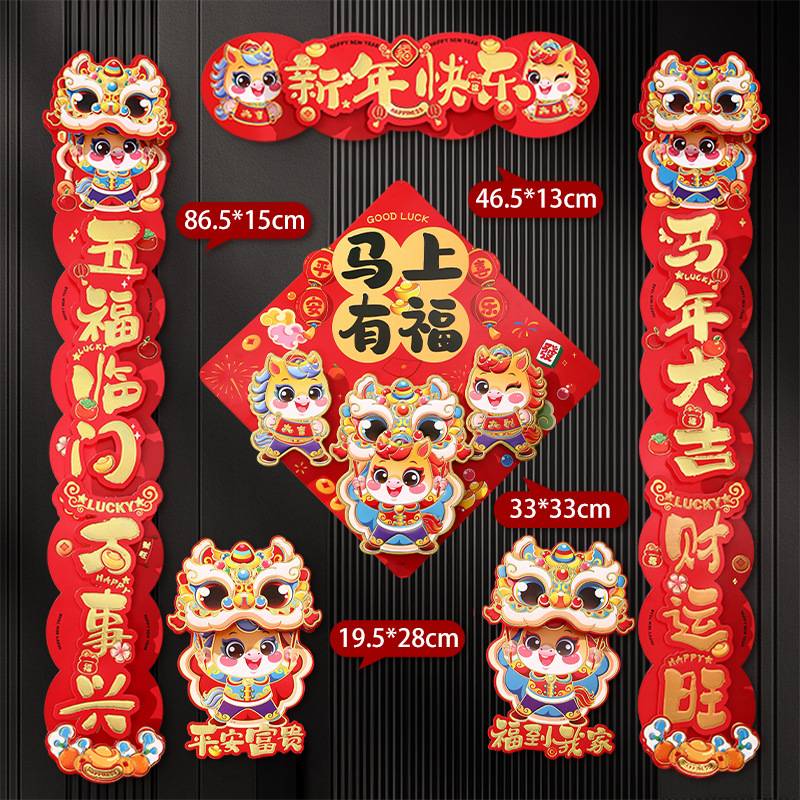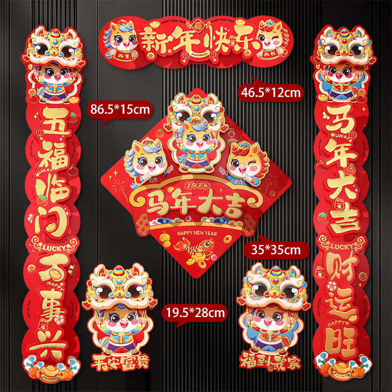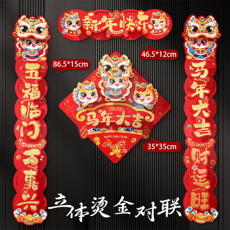 gilding three-dimensional couplet golden horse sending blessing + three-dimensional fu b + pair stickers (free dispensing)
