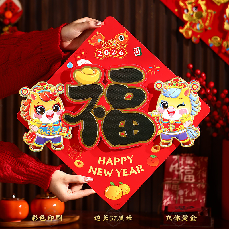 gilding three-dimensional couplet golden horse sending blessing + three-dimensional fu b (free dispensing)