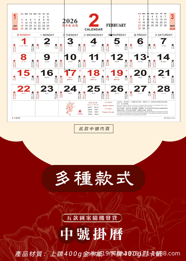 1 medium calendar
